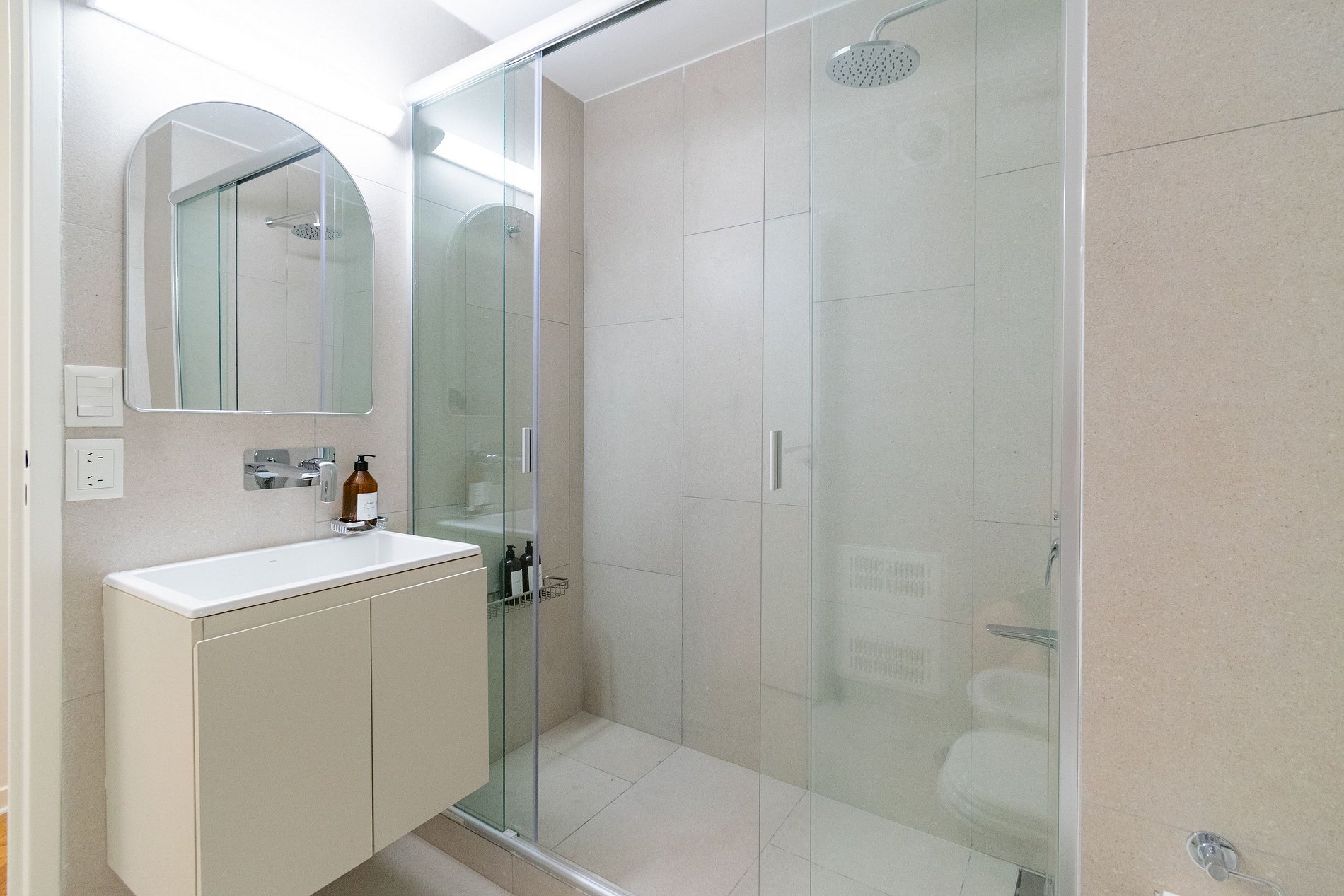 Uno de los dormitorios tiene una cama king-size con baño en suite, el segundo dormitorio tiene dos camas individuales y el tercero una cama individual. Estos últimos dos dormitorios cuentan con un baño con ducha. Además, hay un toilette.