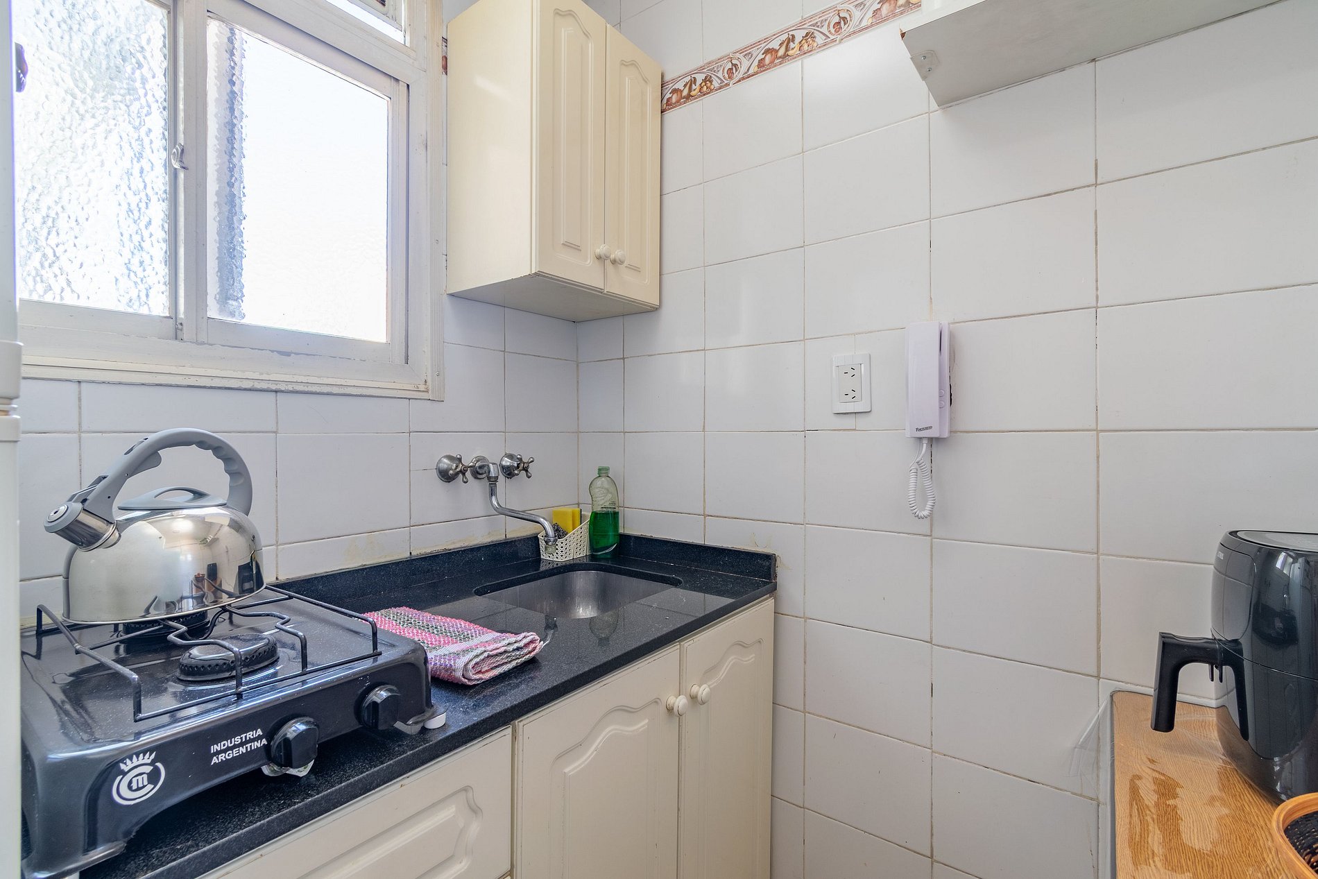 Es un departamento sencillo pero preparado con todo lo necesario para que tengas una estadia comoda. Dormitorio con cama queen, Smart-TV y baño en suite. Ademas la cocina cuenta con hornallas y una air fryer para que puedas preparar tus comidas.
