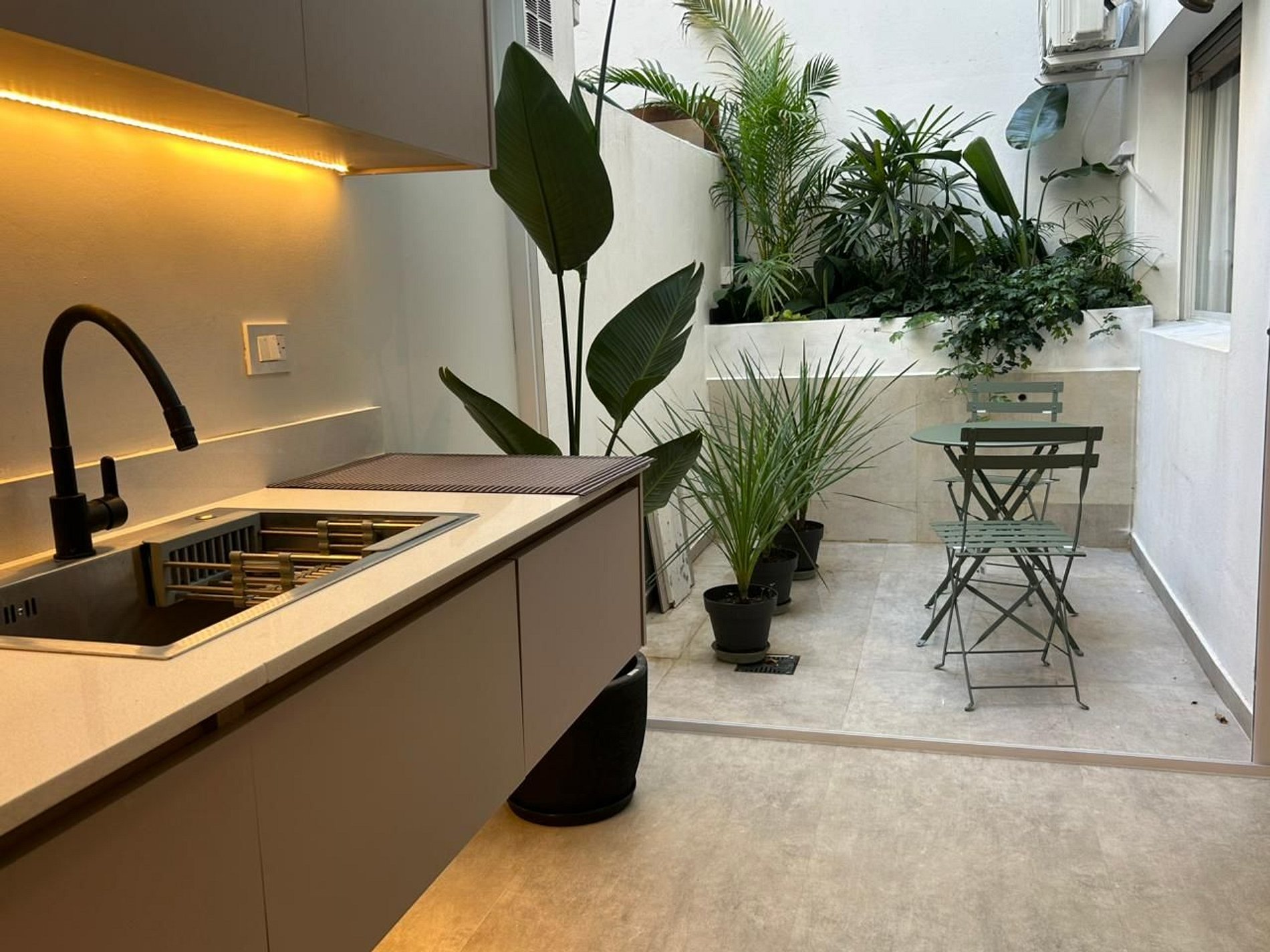 El dormitorio tiene una cama king-size, el baño y la cocina se encuentran renovados a nuevo. Cuenta con un patio interno, con mesa y sillas para estar.