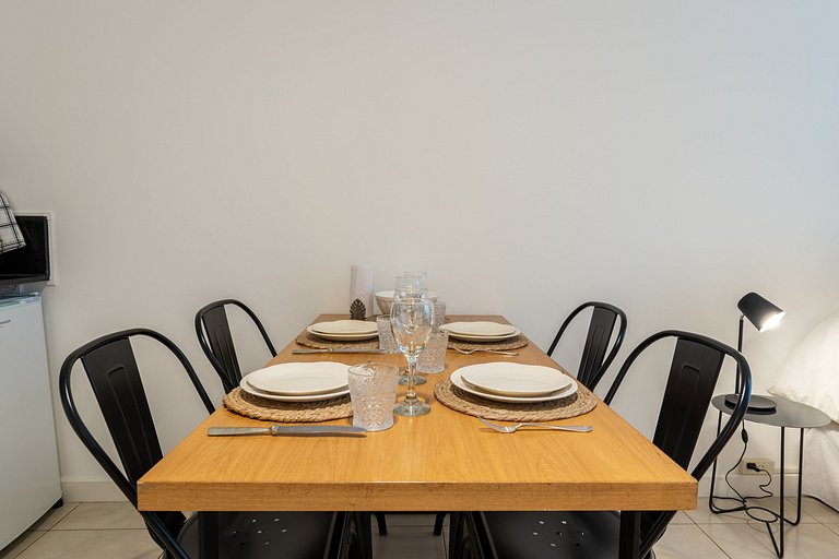 Es un monoambiente sofisticado, con muebles y vajilla de primera calidad. Encontrarás: