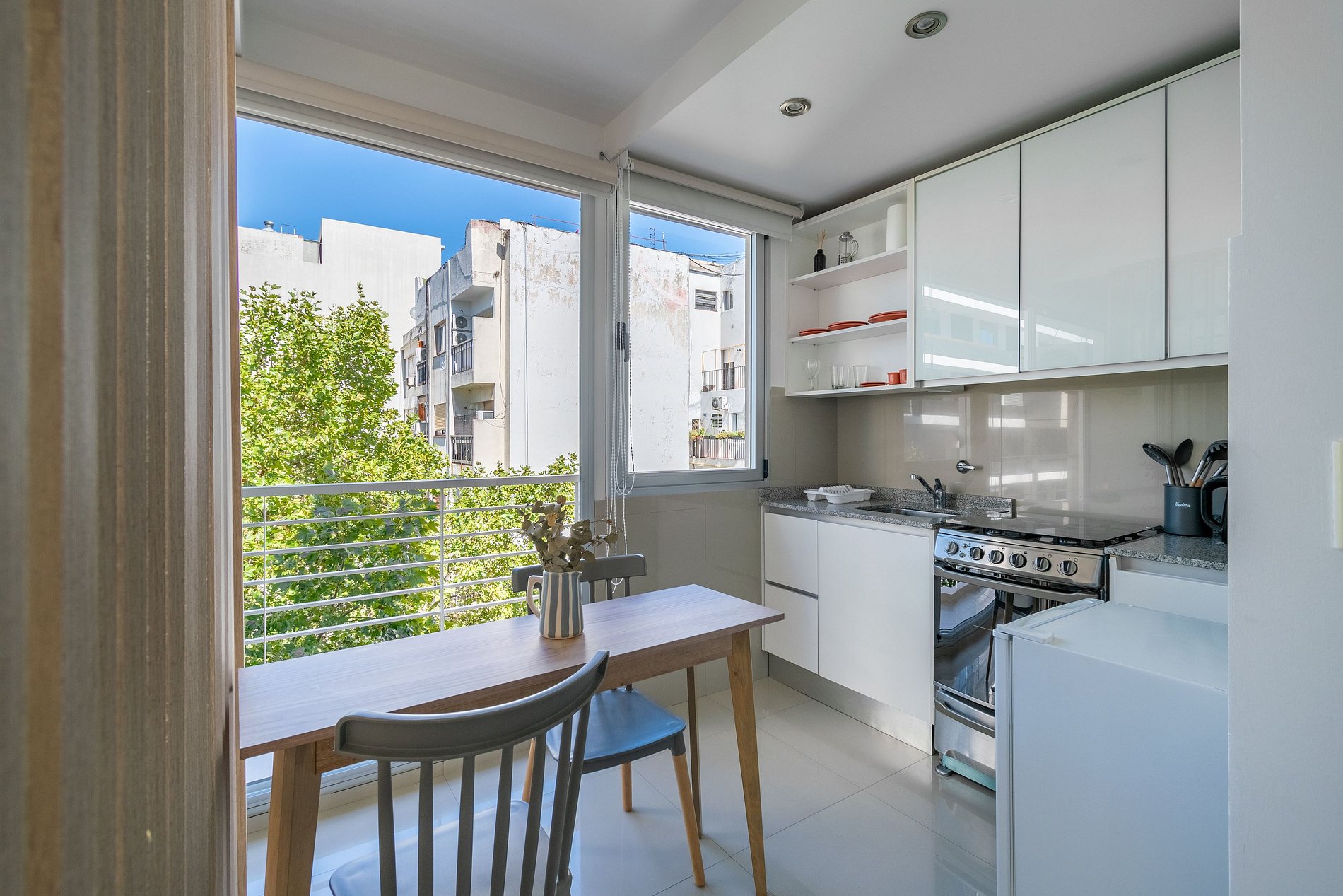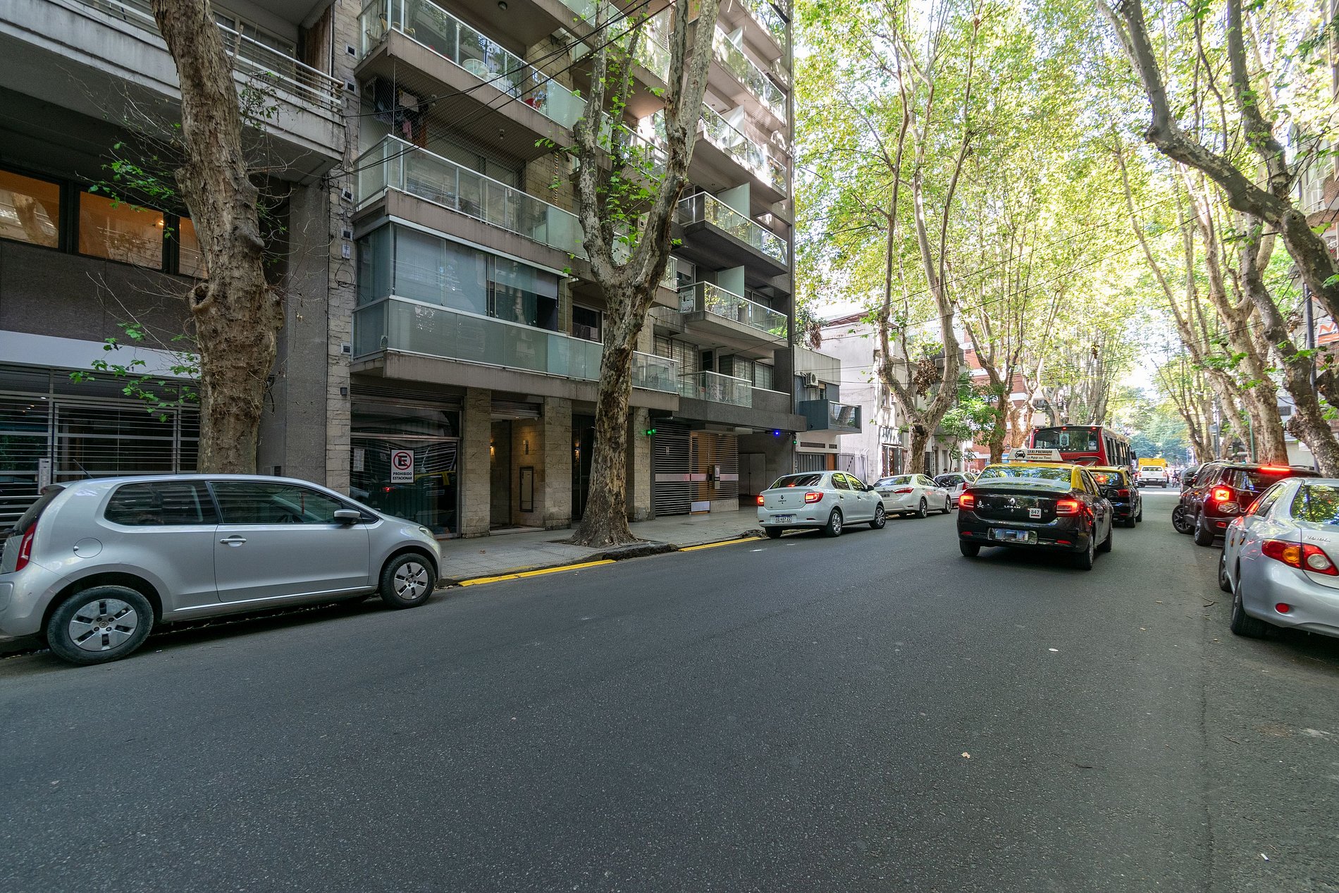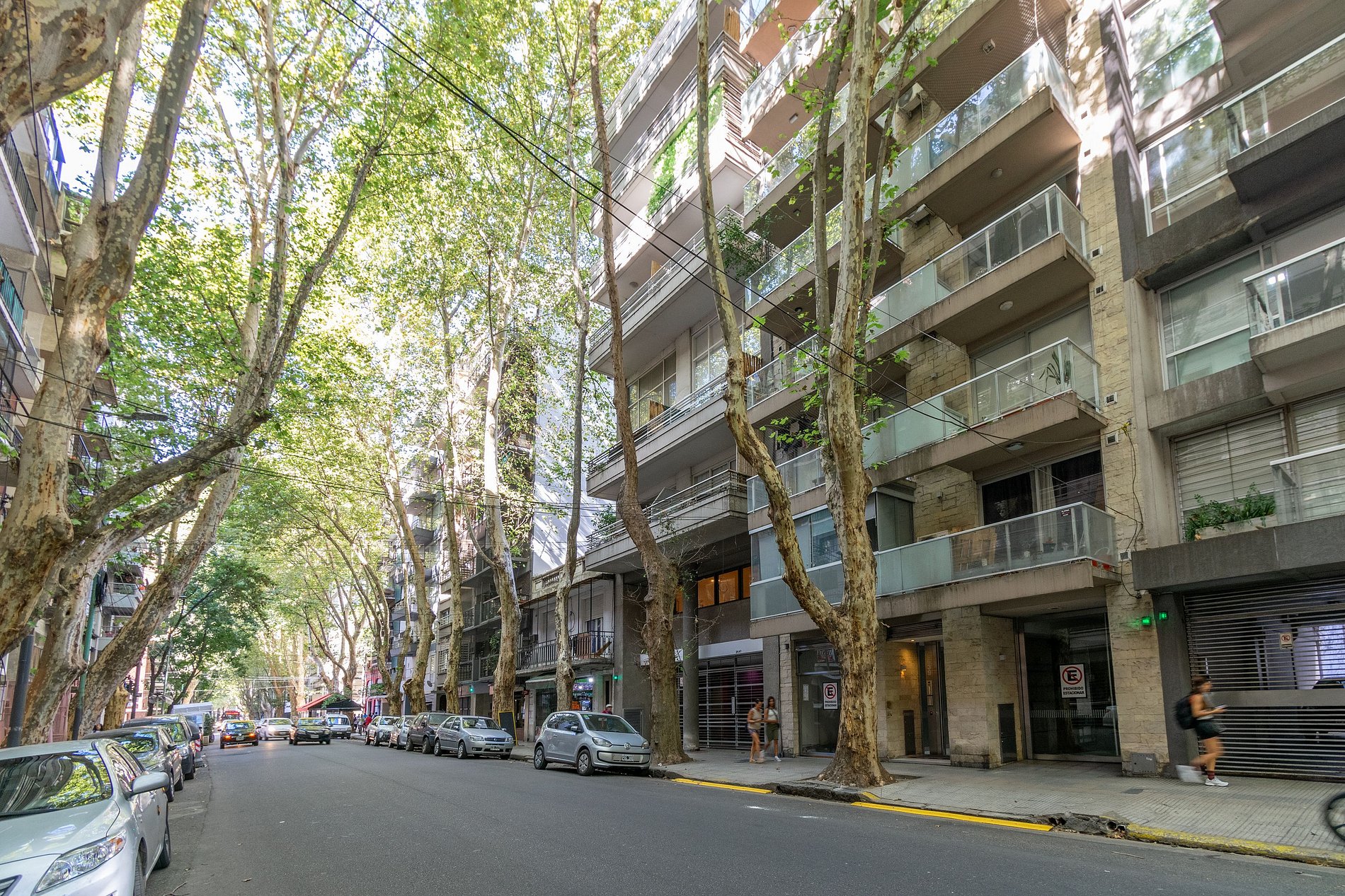 El departamento está en Palermo! Este barrio en el corazón de Buenos Aires es perfecto para tu estadía. Es una zona tranquila pero llena de vida, con muchos lugares para comer y divertirse. Además, está rodeada de mucho verde, especialmente en la calle donde está ubicado el edificio. Vas a ver un montón de árboles desde tu balcón. En el barrio hay restaurantes todo tipo, desde parrillas argentinas hasta comida internacional. Y hay un montón de lugares para visitar, como el Rosedal de Palermo, el Ecoparque, La Rural y la Embajada de Estados Unidos. No tenés que preocuparte por la seguridad, es uno de los barrios más seguros de la ciudad. Y tenés todo lo que necesitas cerca: farmacias, lavaderos de ropa y supermercados a solo unos pasos. Te esperamos!