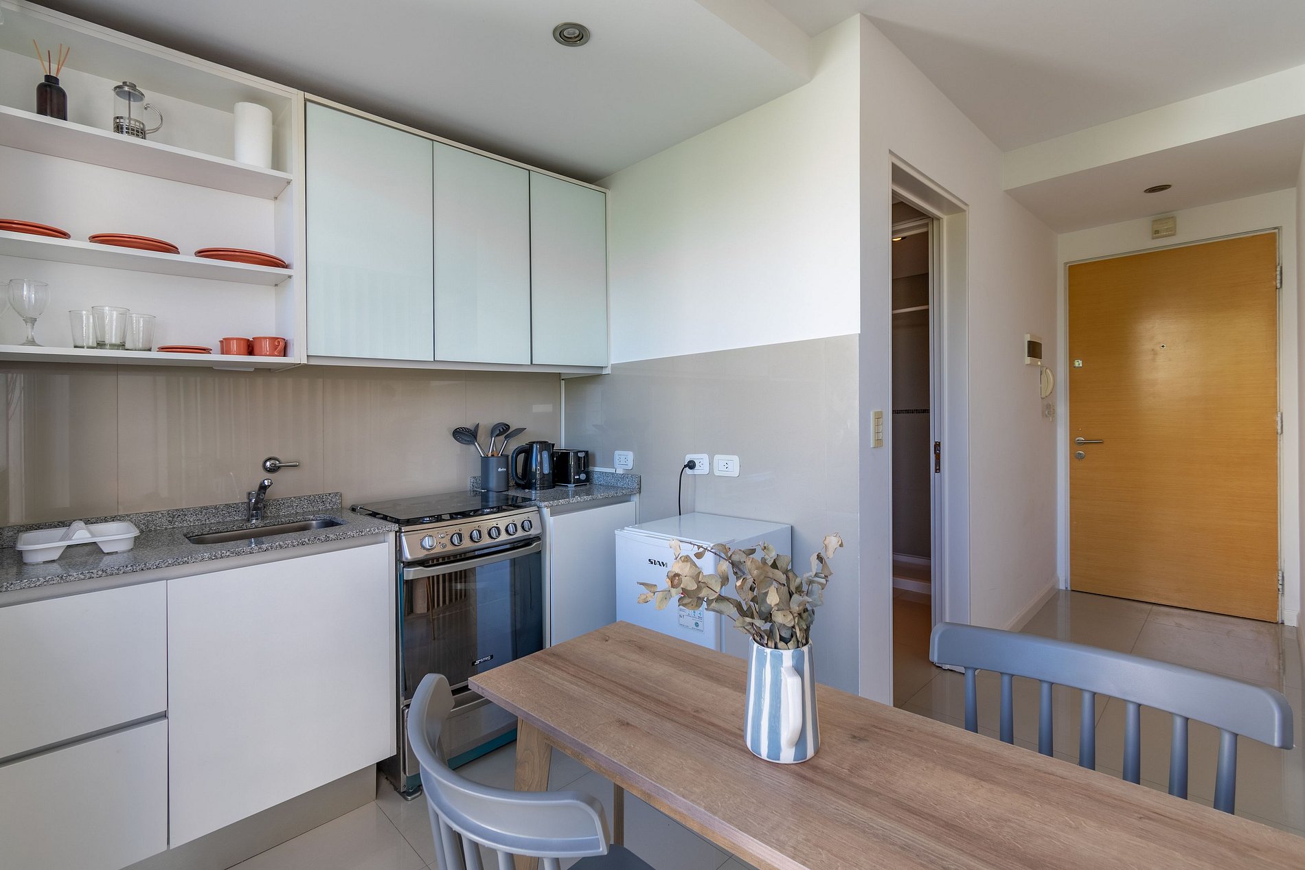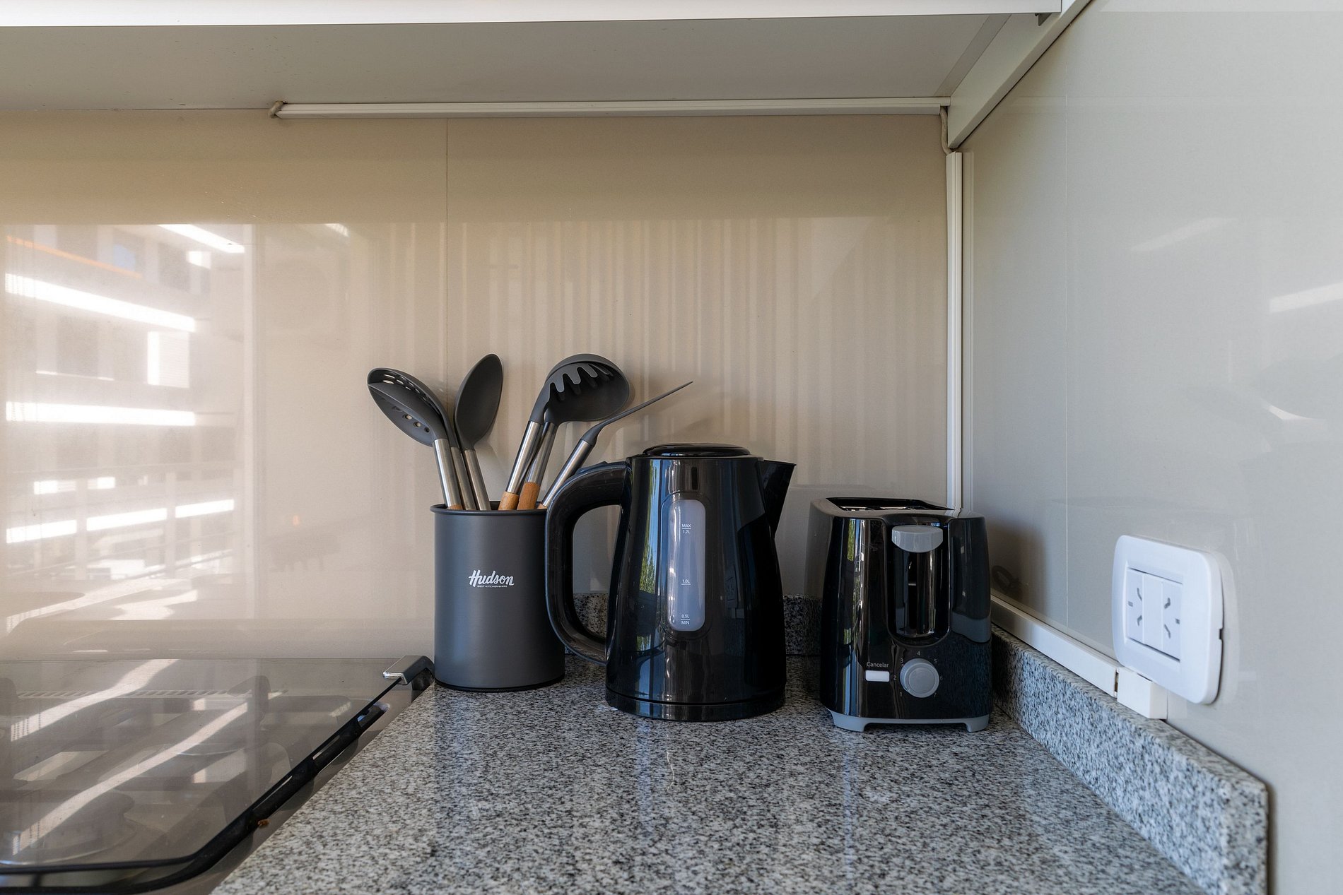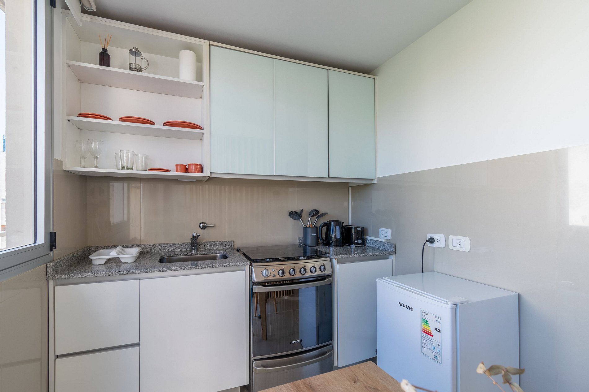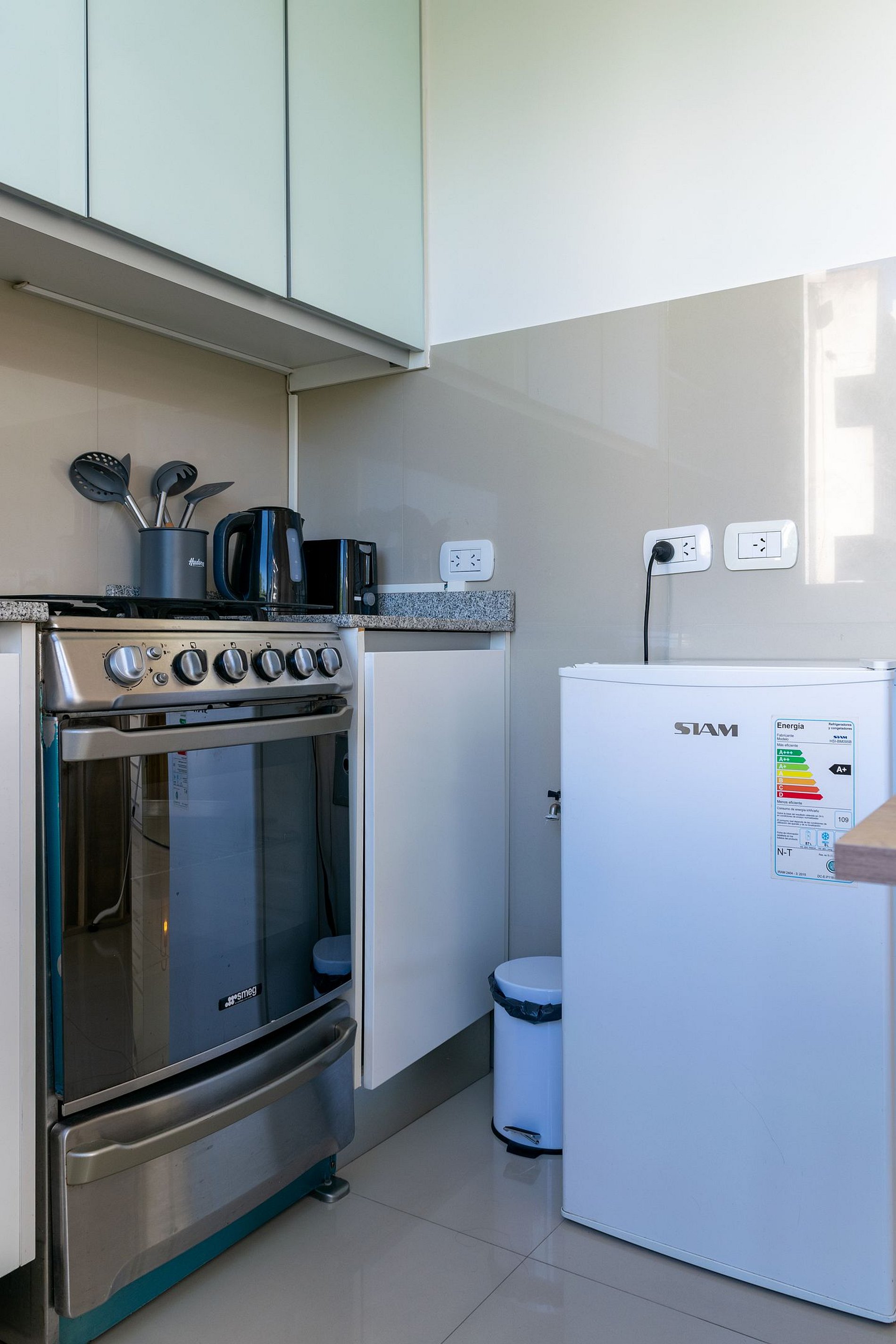 La cocina tiene heladera bajo mesada, horno, microondas, pava electrica, tostadora y vajilla completa. Por otro lado cuenta con smartv, aireacondicionado y conexion a wifi. Ademas el edificio ofrece pileta, parrilla, lavarropas y secaropas.