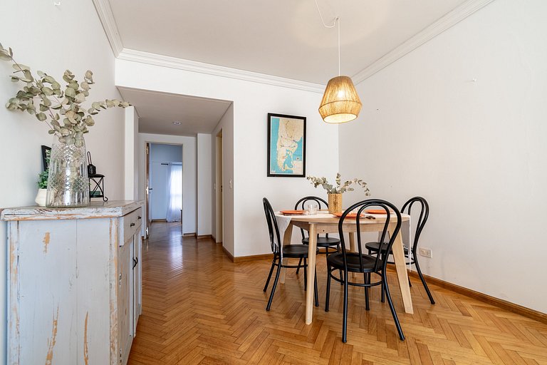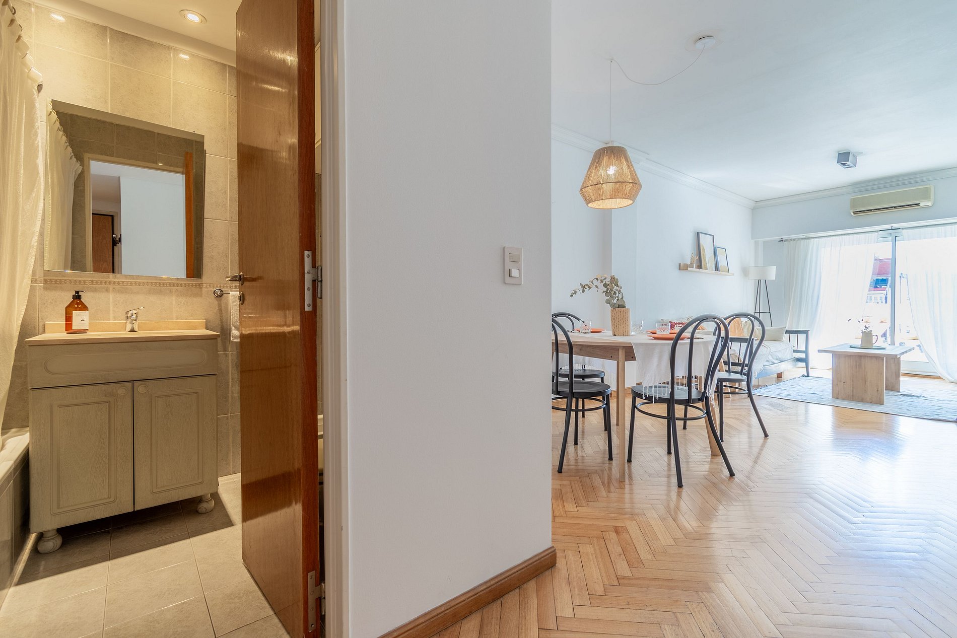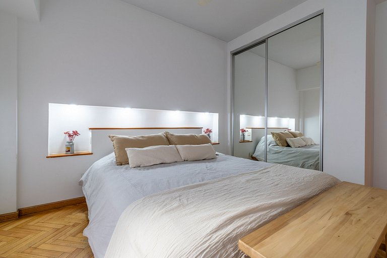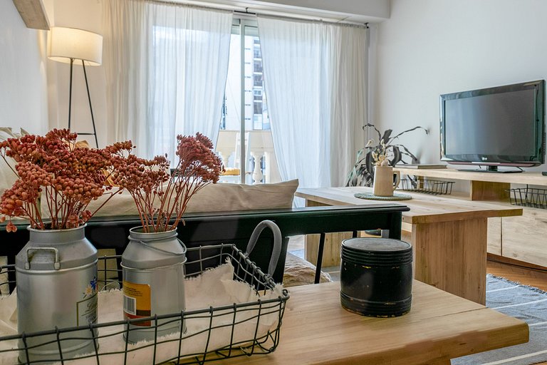 El departamento, con capacidad para tres personas, cuenta con Wi-Fi, TV, un hermoso balcón, aire acondicionado en el dormitorio y sala de estar y lavarropas. Su ubicación te brinda acceso a lo mejor de la ciudad y la comodidad de una zona residencial.