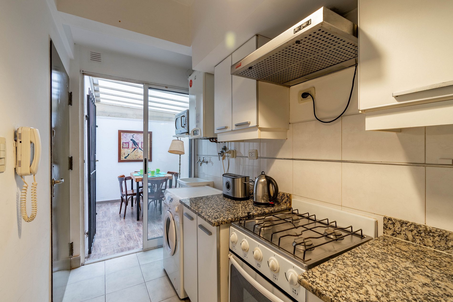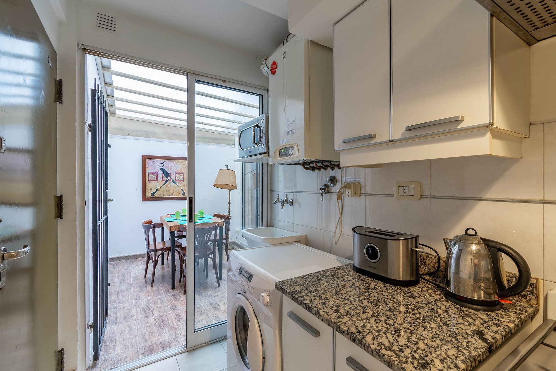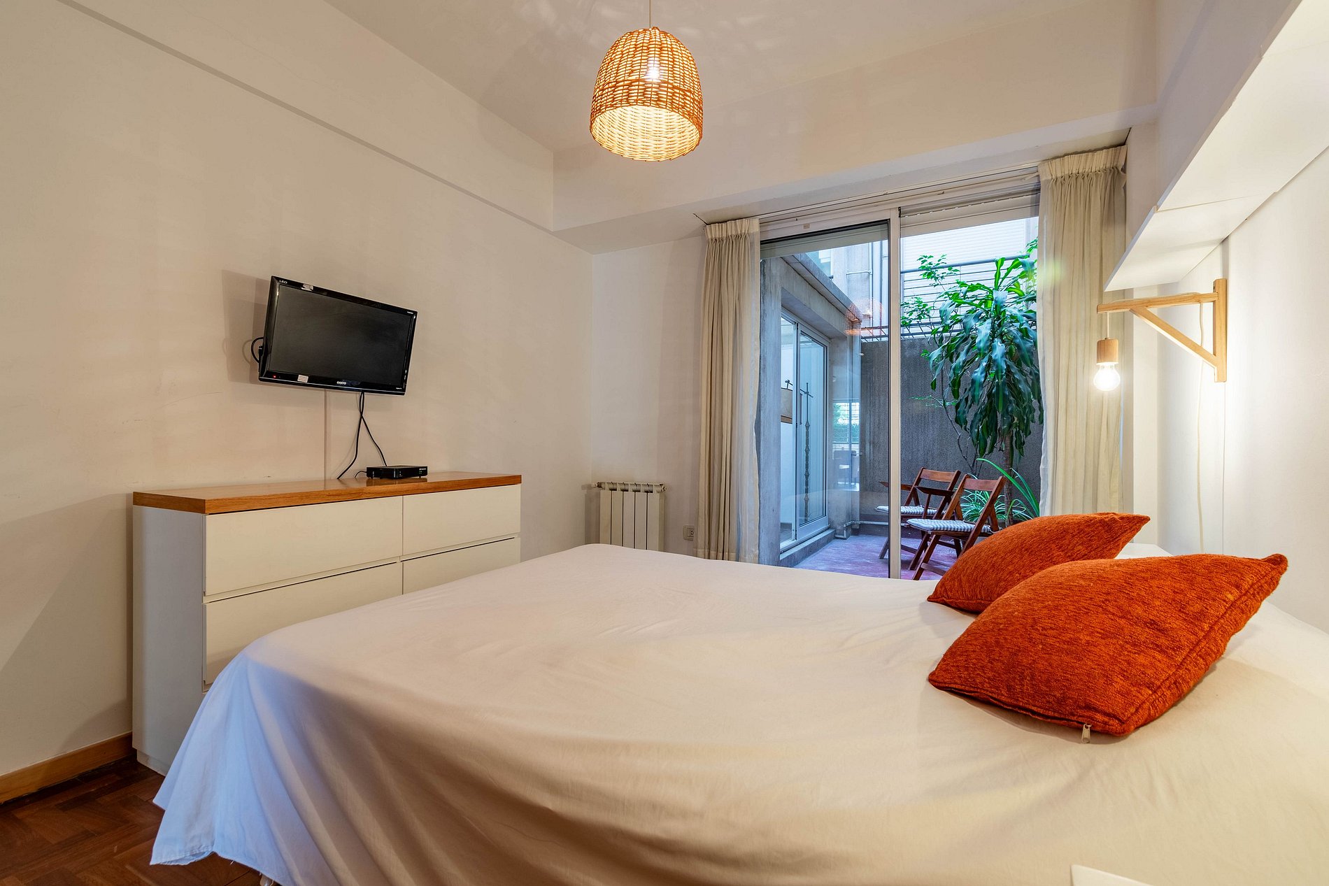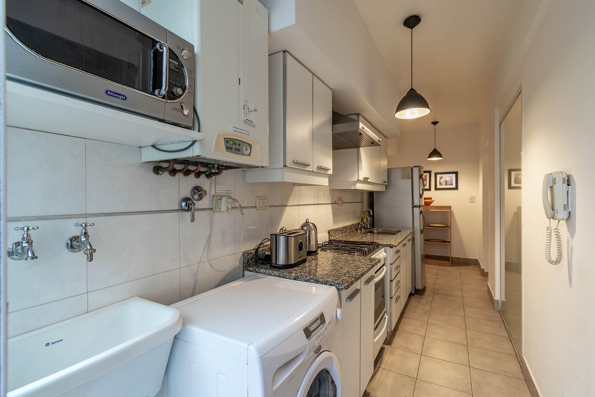 Cómodo y equipado departamento en Recoleta, a dos cuadras de Av Santa Fe y Av Coronel Díaz con cohera incluída. Espacioso, con capacidad para cuatro personas. Posee dos cuartos, cada uno con una cama matrimonial. Dos baños, uno con ducha y otro con ducha y bañera. Una cocina amplia y completamente equipada, living comedor confortable y un espacio oficina, muy luminoso separado del resto de los ambientes. La zona es muy tranquila y al mismo tiempo céntrica.
