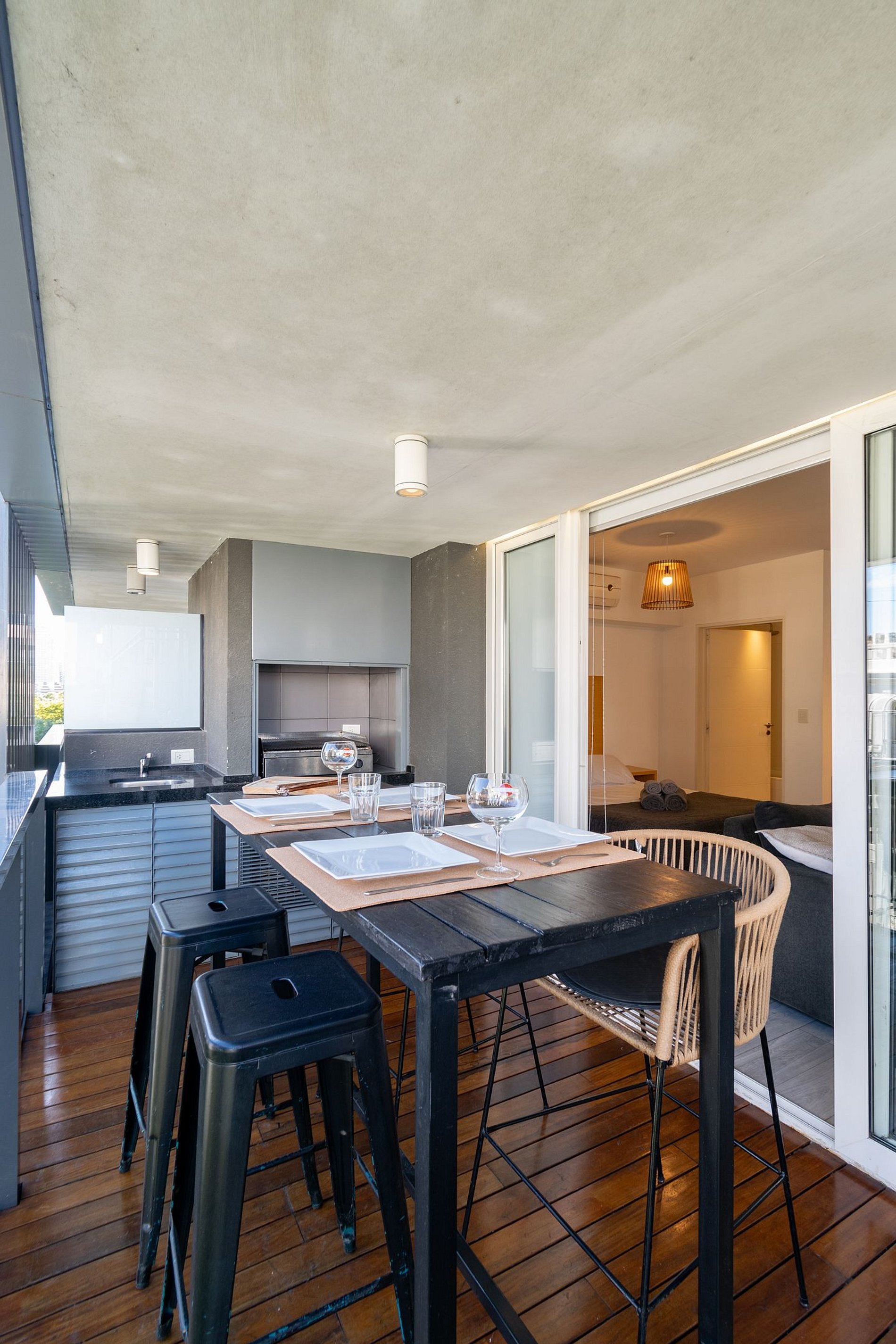 Es un monoambiente muy amplio y cómodo. Muy luminoso, pero con cortinas que bloquean perfectamente la luz. Cuenta con cama queen, smart tv, excelente conexion a internet, aire aconndicionado y calefaccion. Cocina equipada y baño completo con secador de pelo.