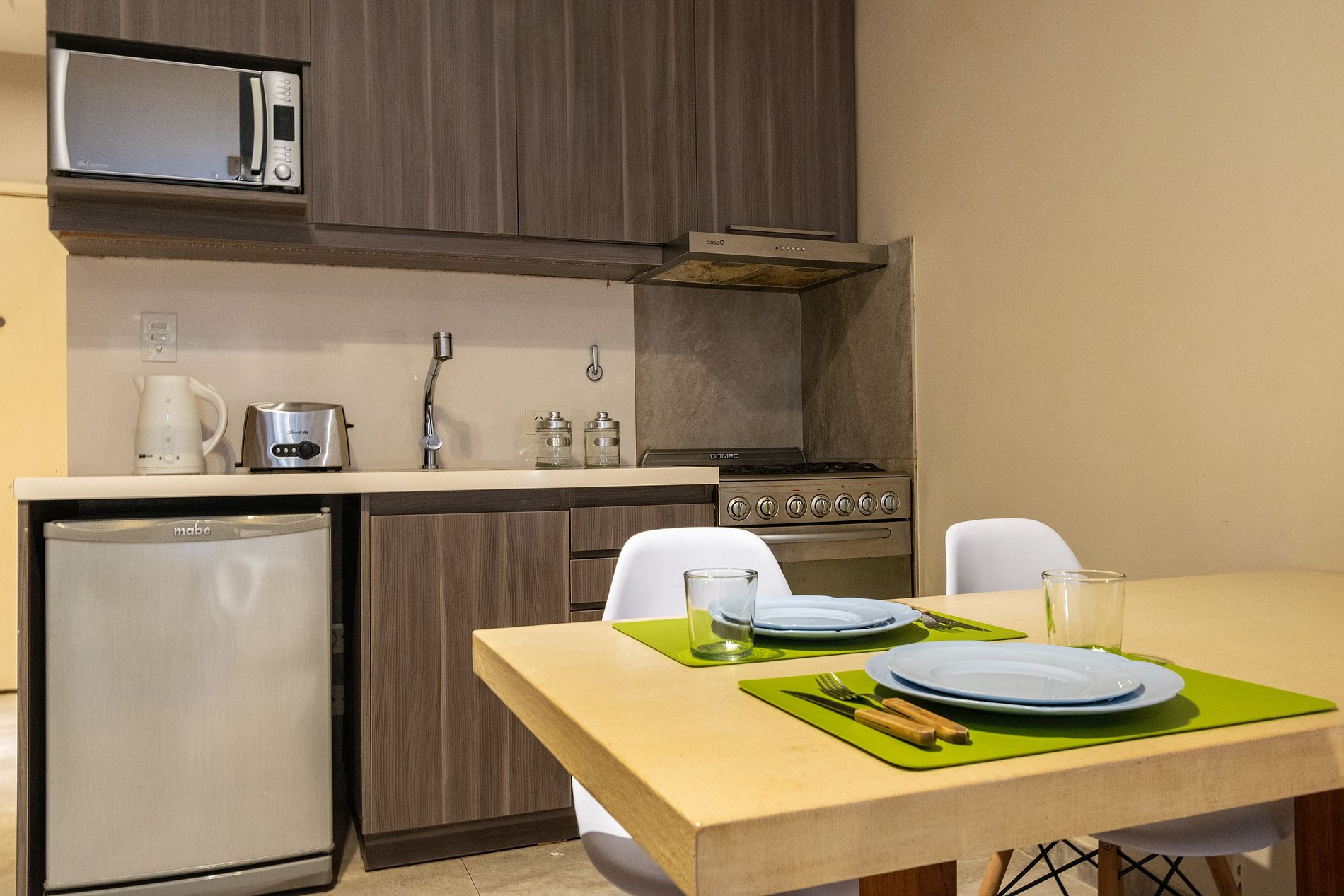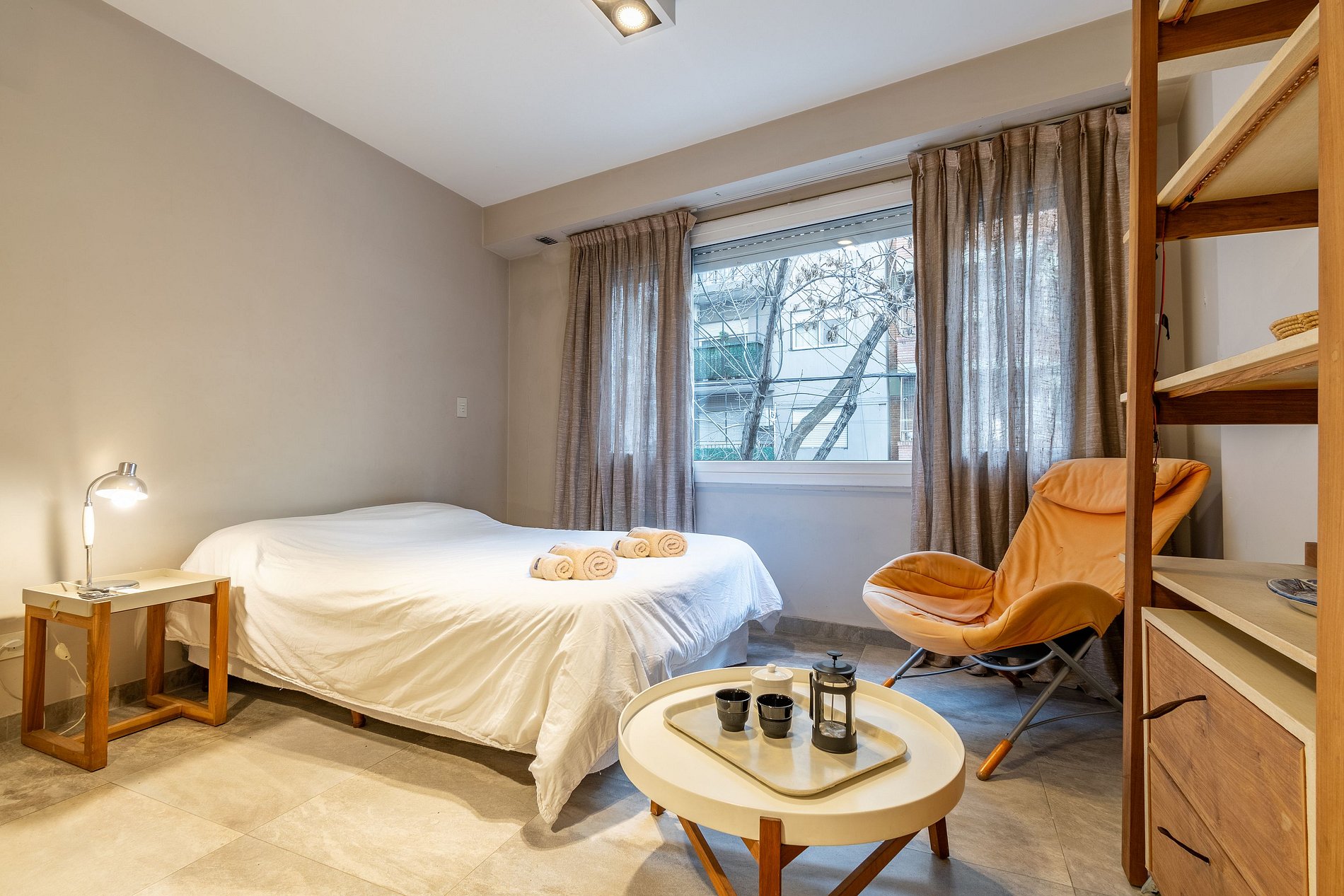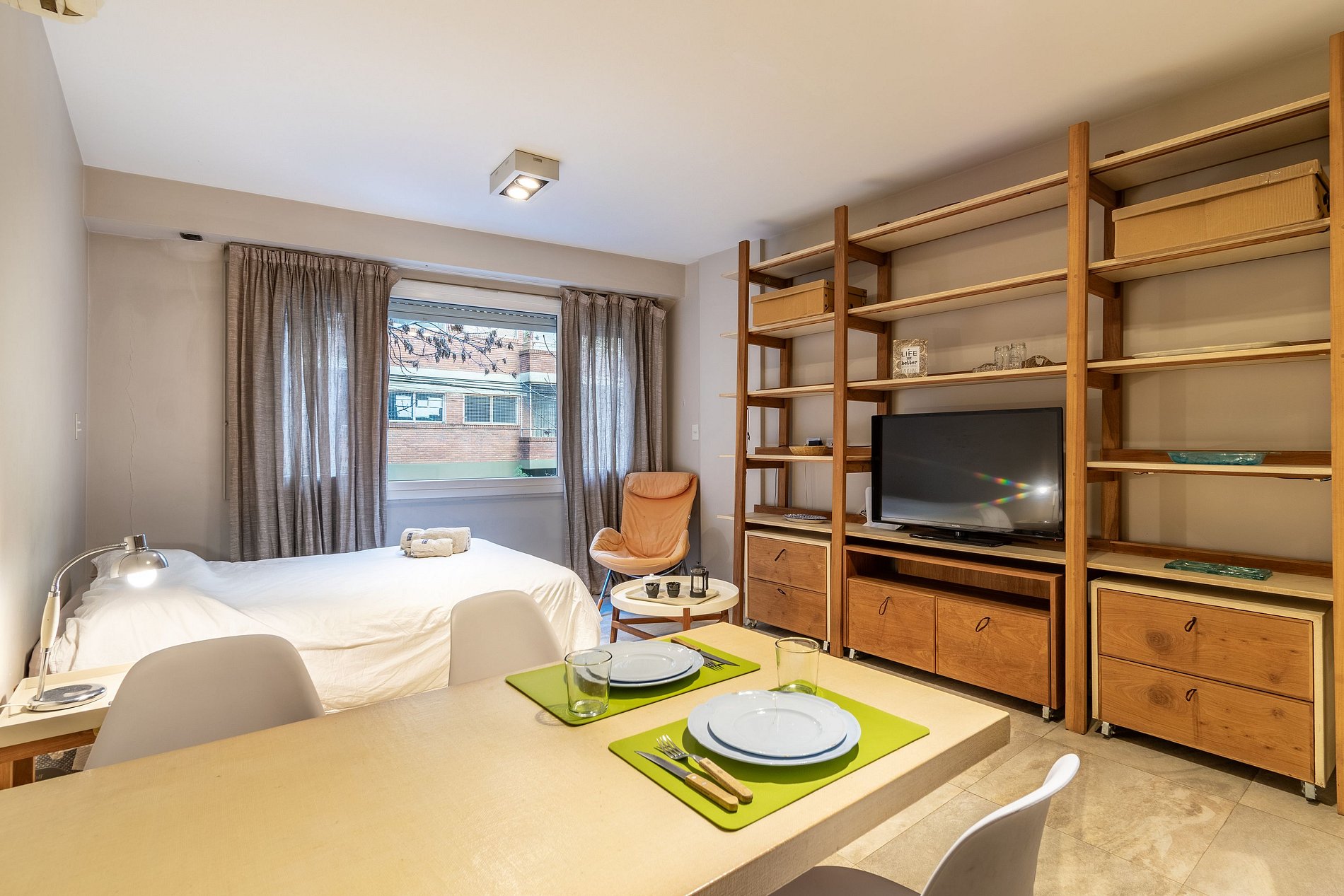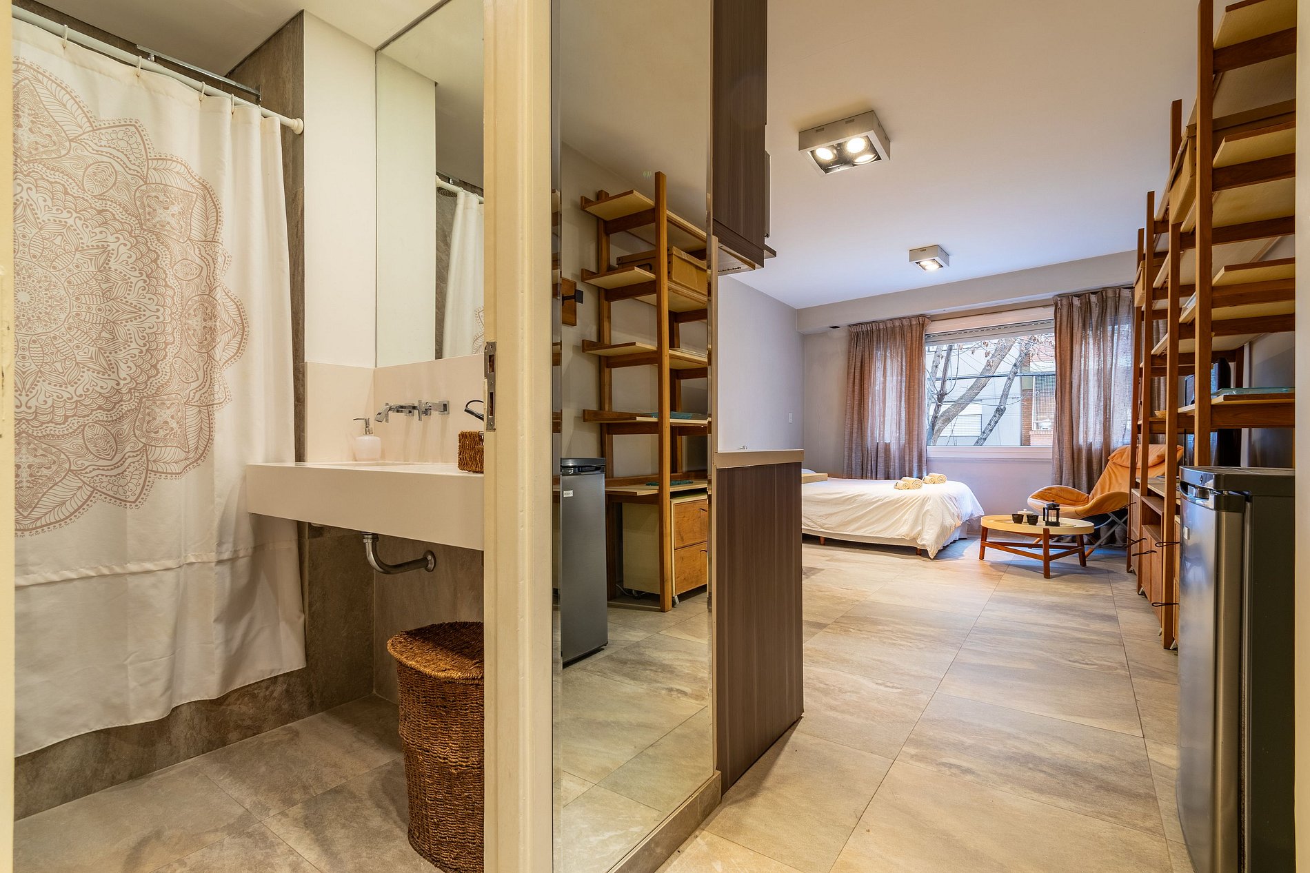 Cómodo para hasta dos personas. Ventanal con vista a la calle que hace que sea un lugar luminoso durante el día. Sommier queen size muy confortable, ideal para un buen descanso. Cocina totalmente equipada con todo lo necesario para preparar una rica comida. Aire acondicionado frio calor.