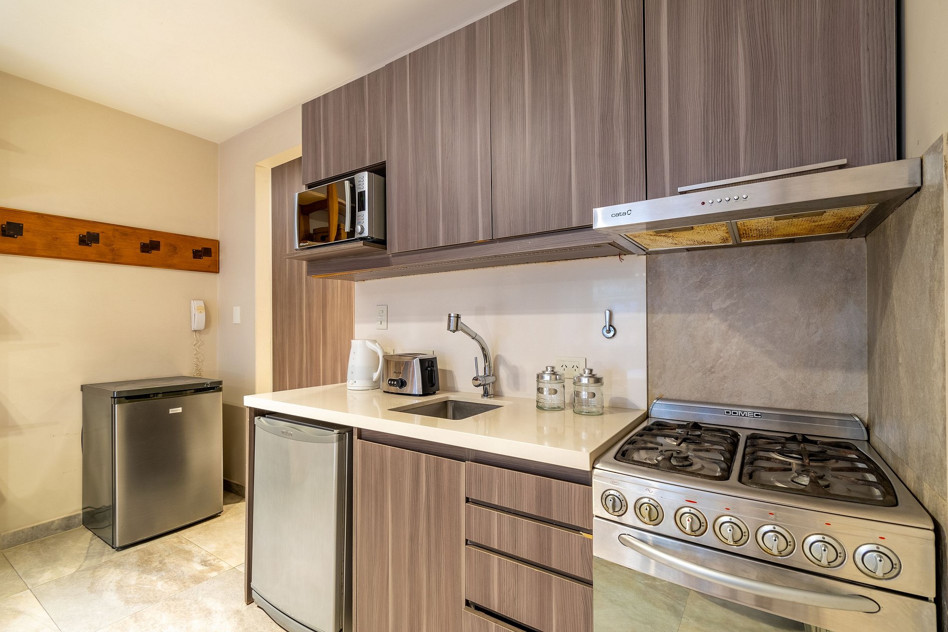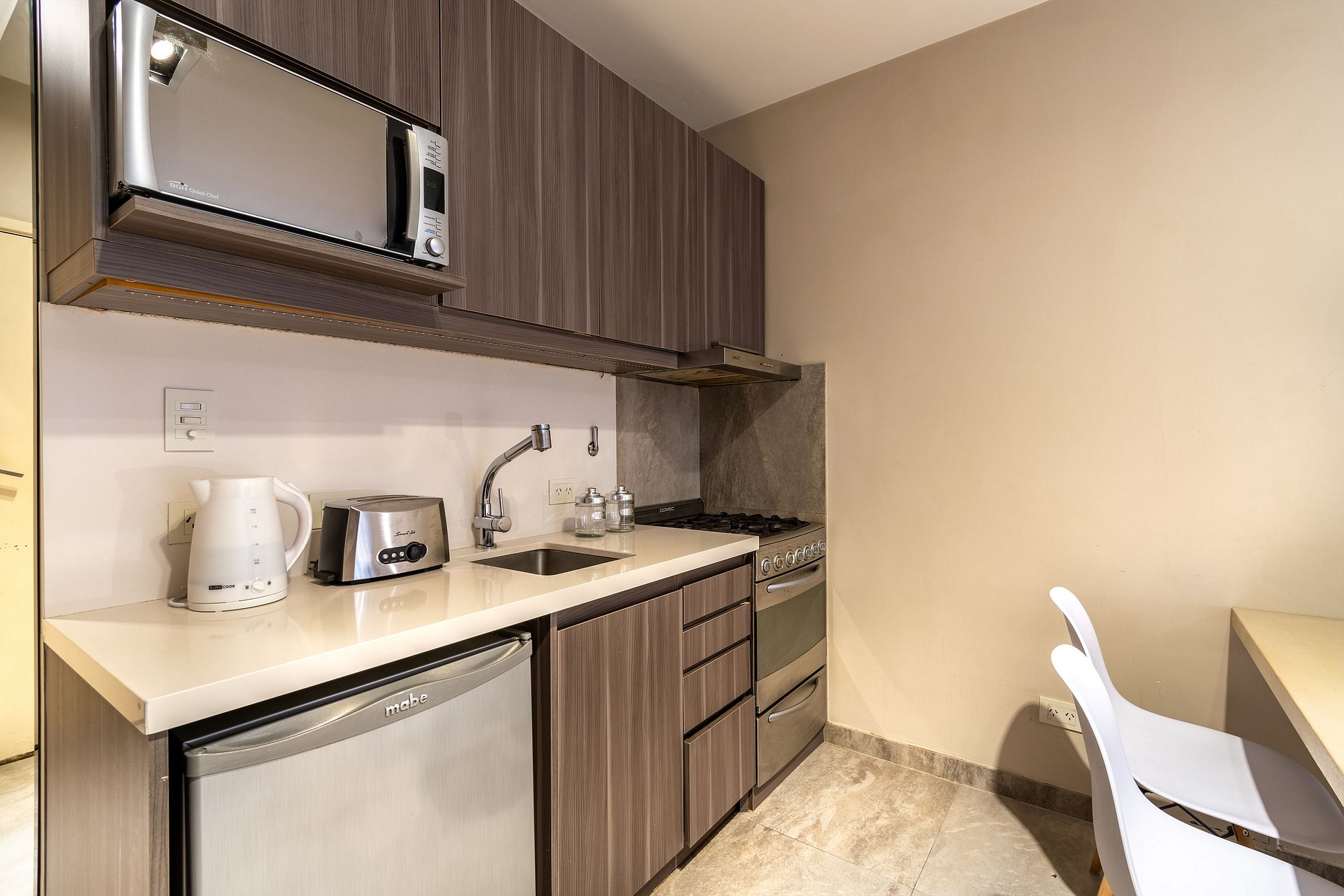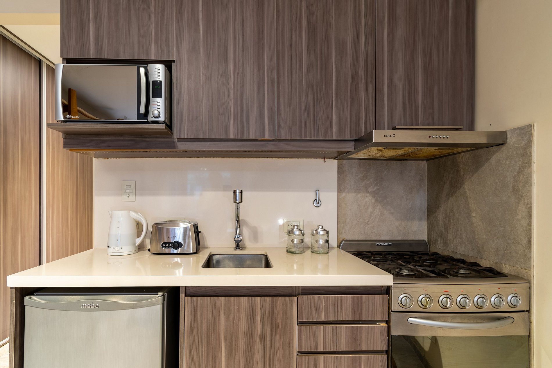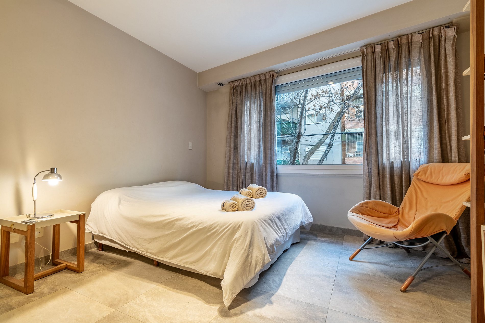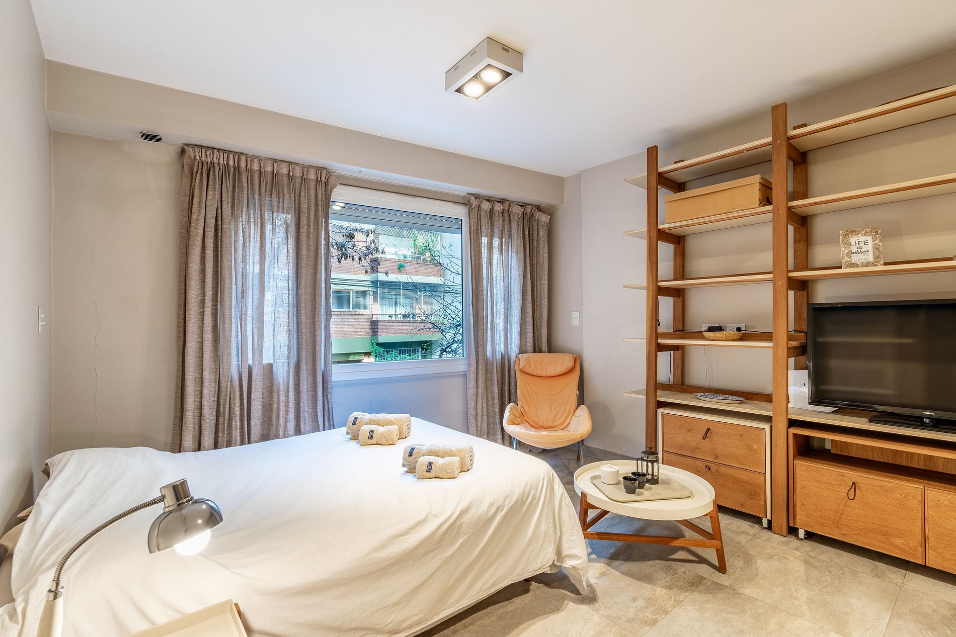 Cómodo para hasta dos personas. Ventanal con vista a la calle que hace que sea un lugar luminoso durante el día. Sommier queen size muy confortable, ideal para un buen descanso. Cocina totalmente equipada con todo lo necesario para preparar una rica comida. Aire acondicionado frio calor.