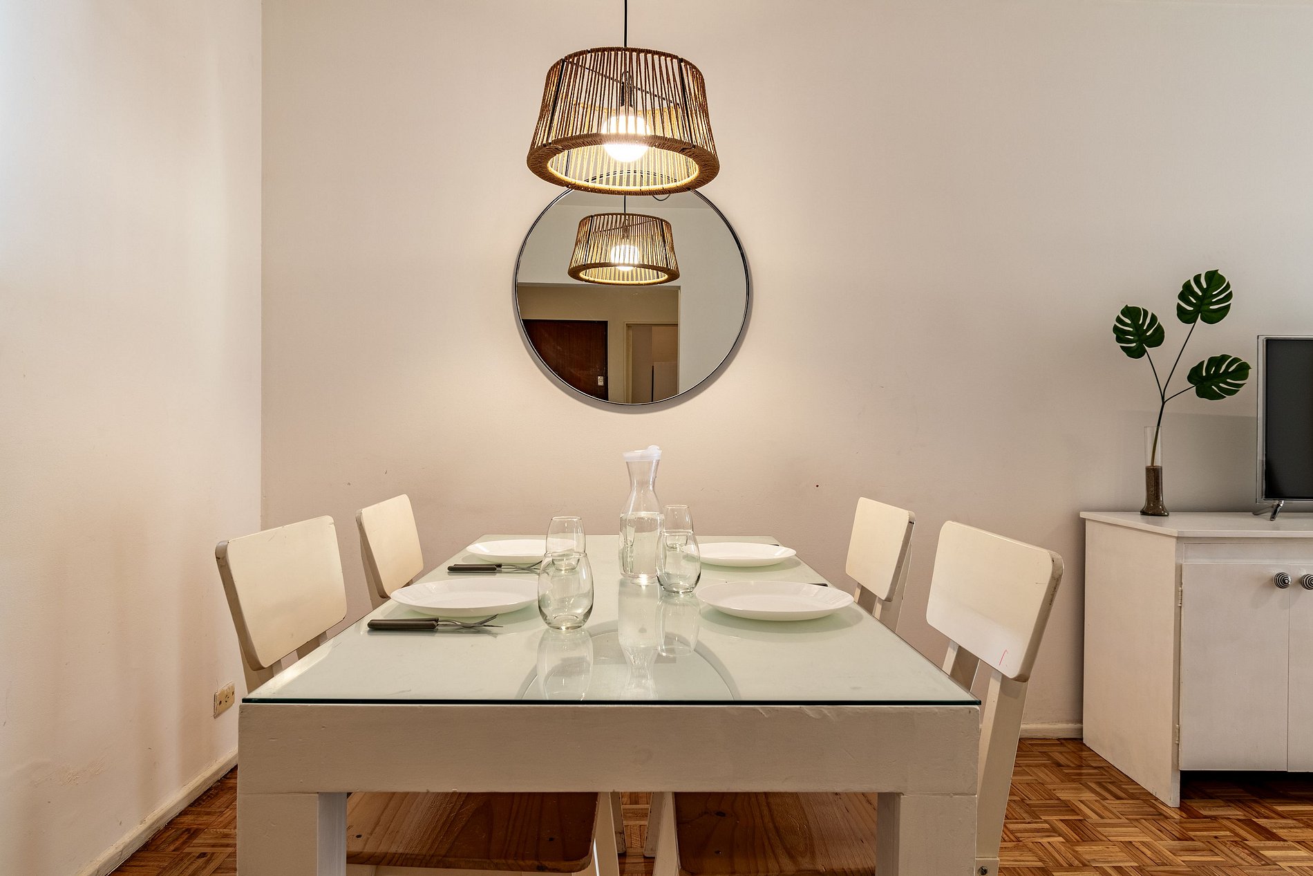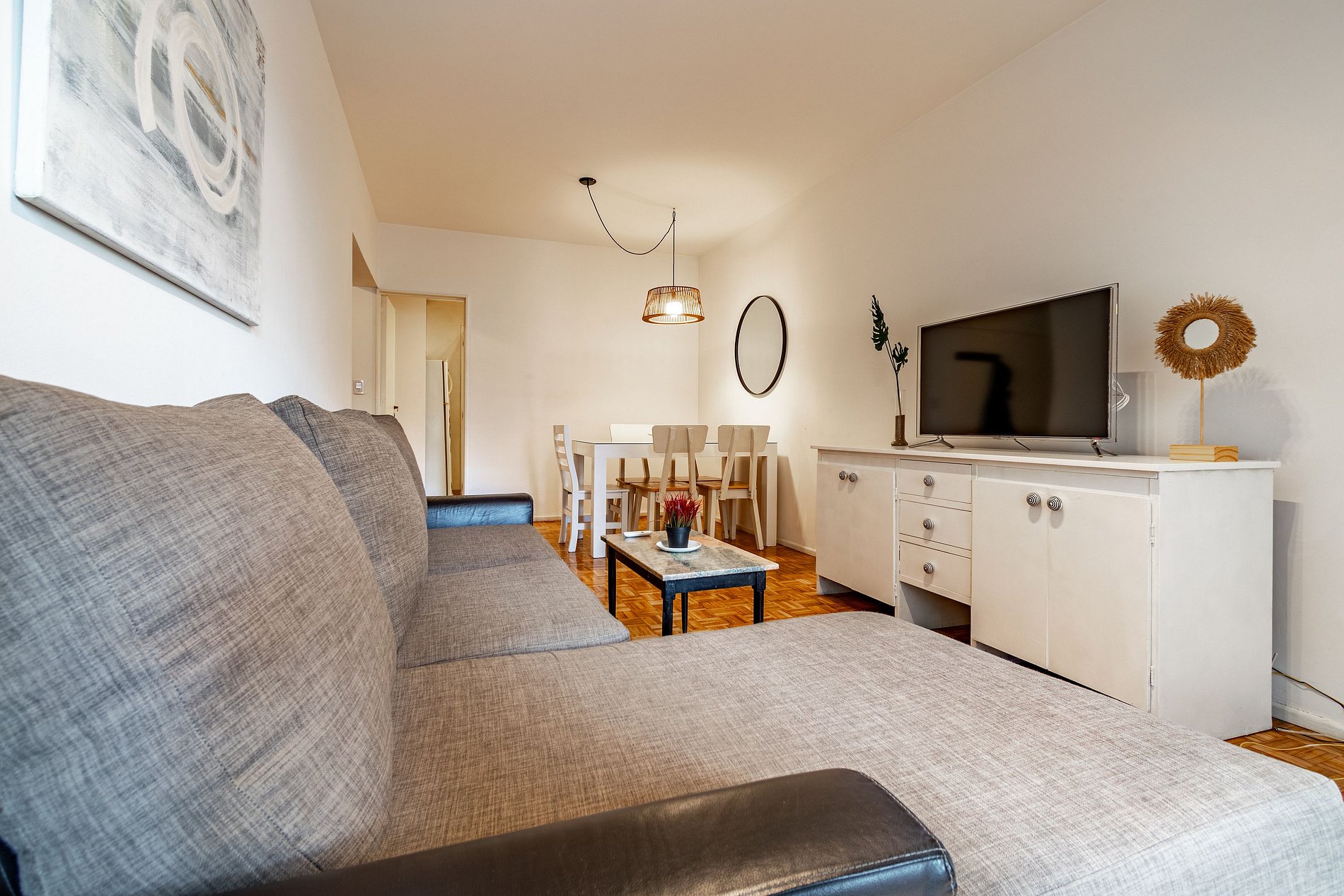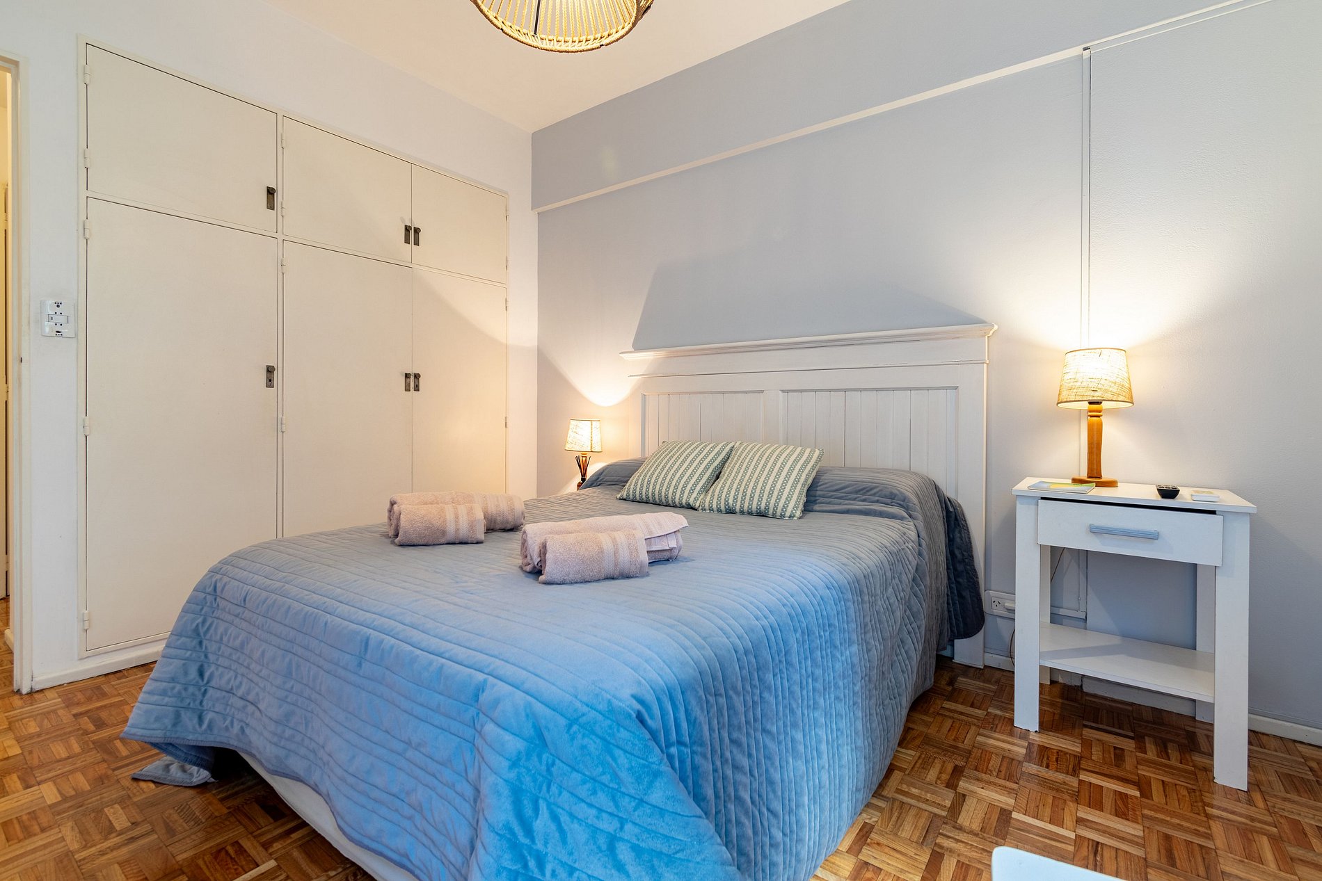El alojamiento se encuentra en el cuarto piso y consta de dos habitaciones dobles, una sala de estar y comedor con balcón, un baño completo, cocina y lavadero