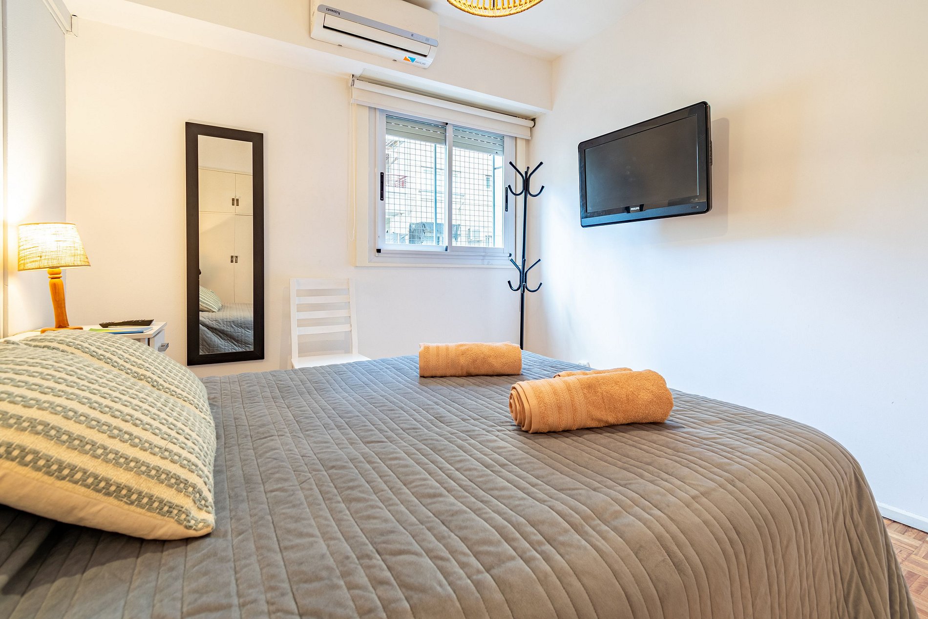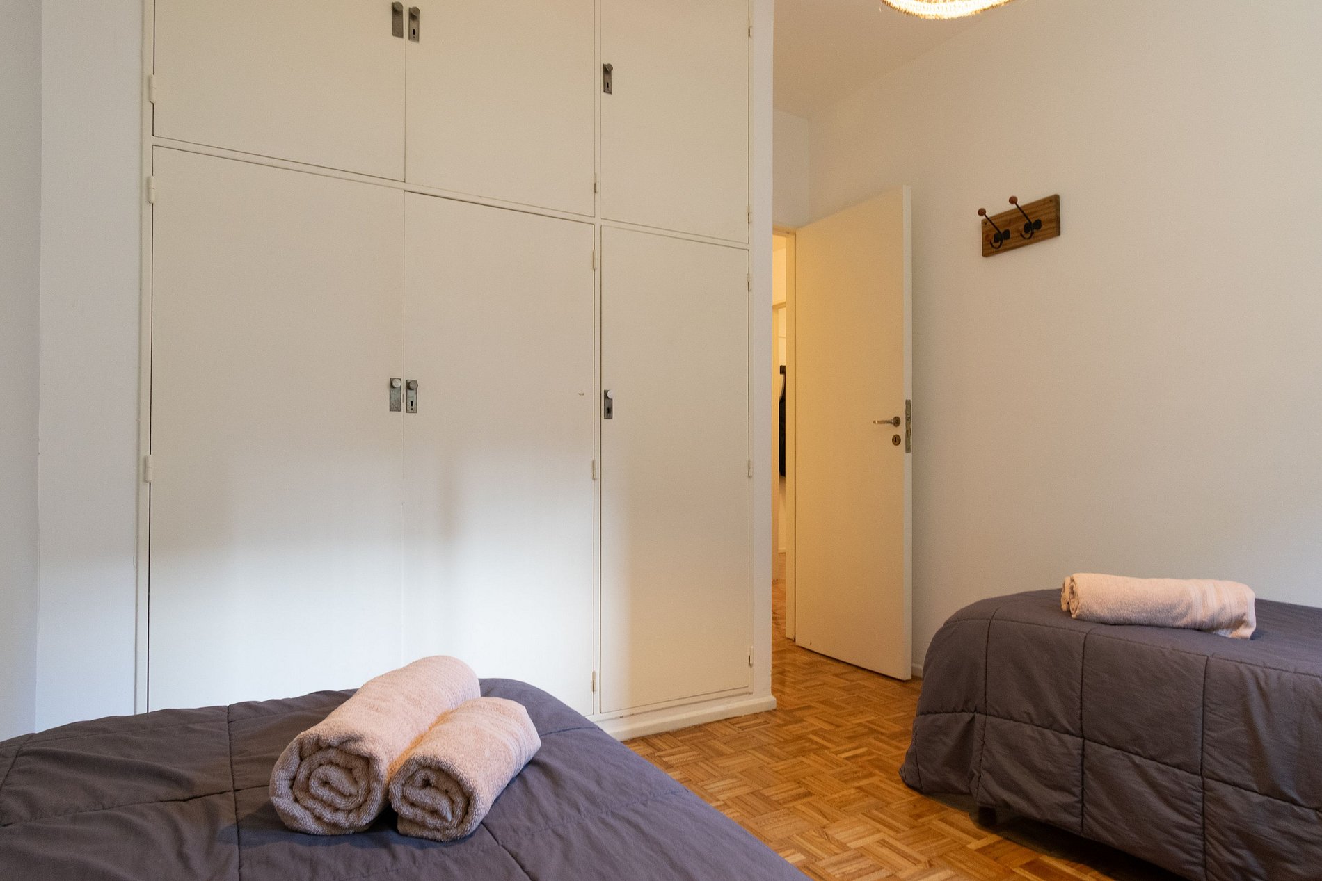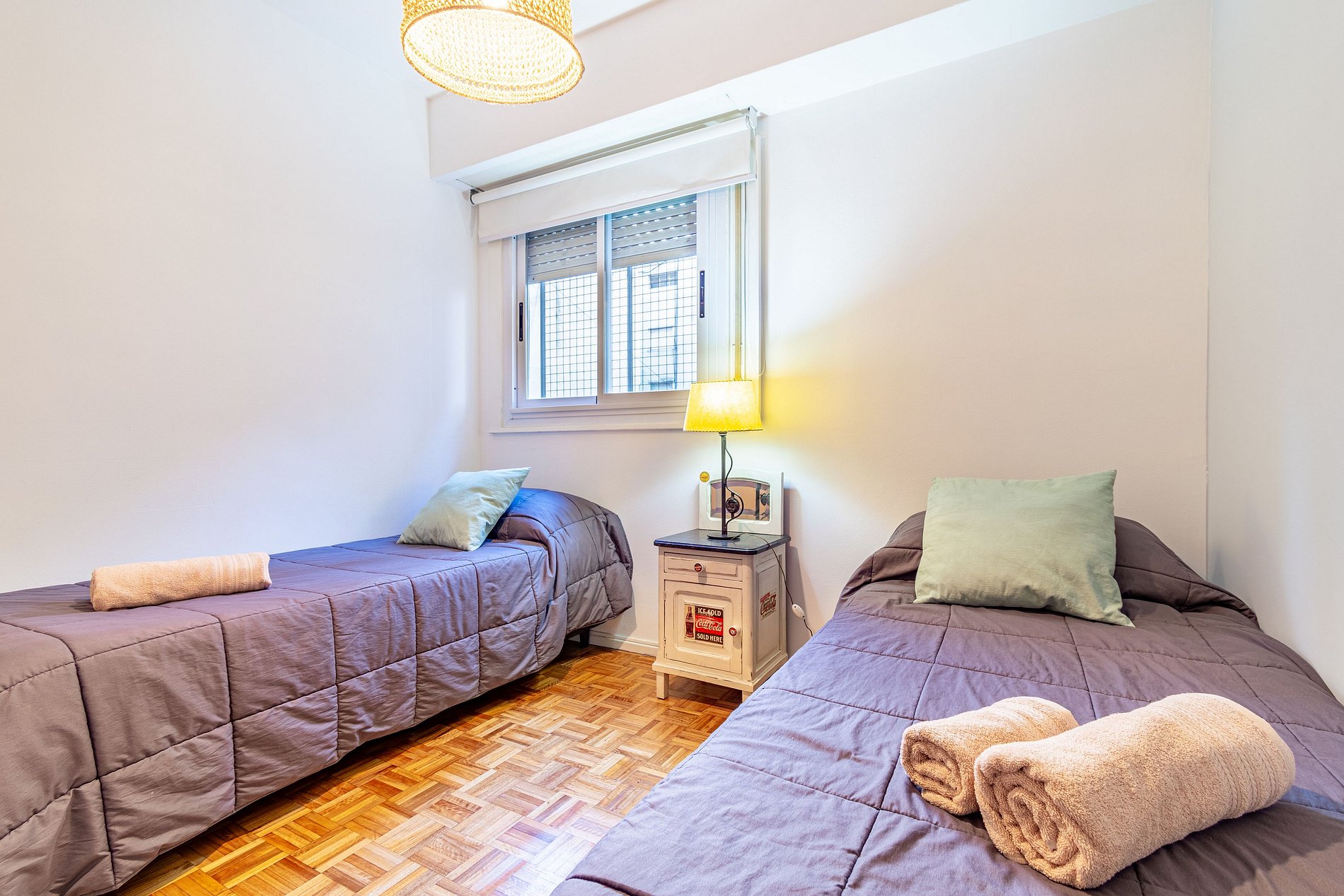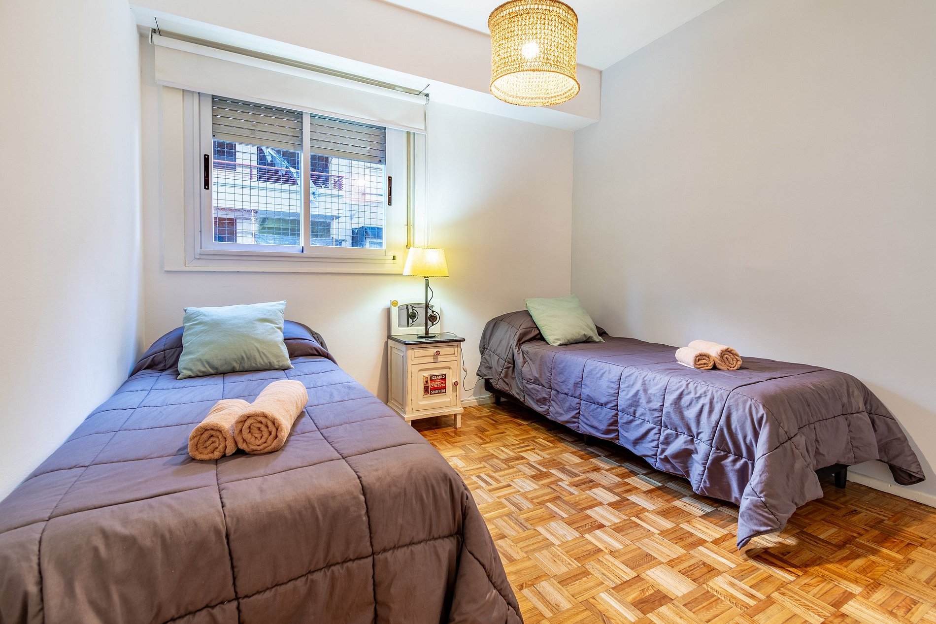 El alojamiento se encuentra en el cuarto piso y consta de dos habitaciones dobles, una sala de estar y comedor con balcón, un baño completo, cocina y lavadero