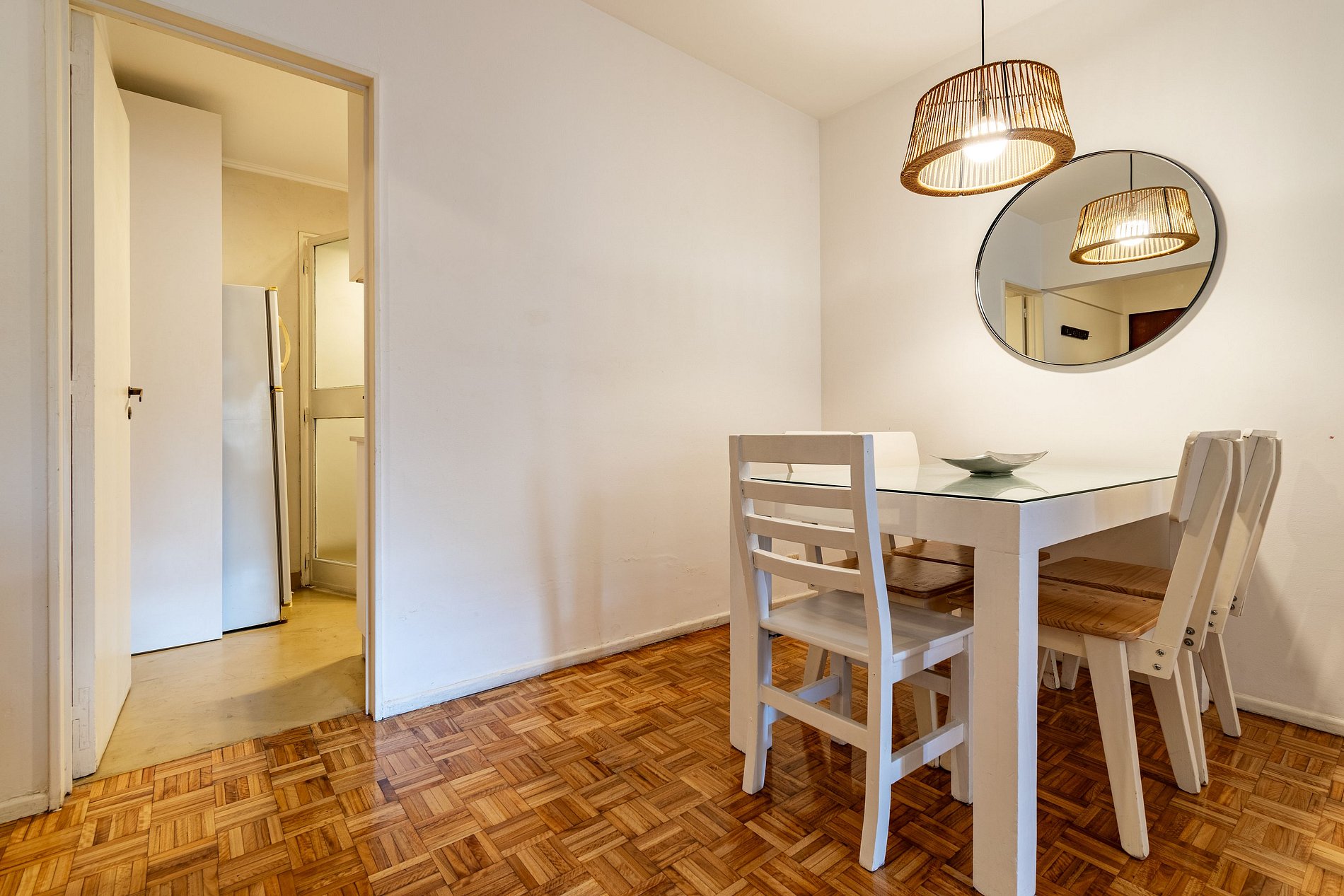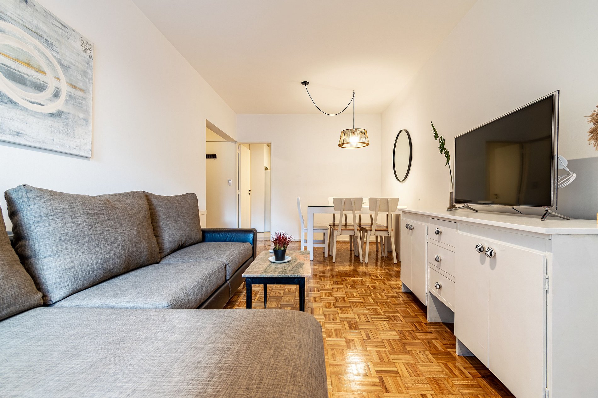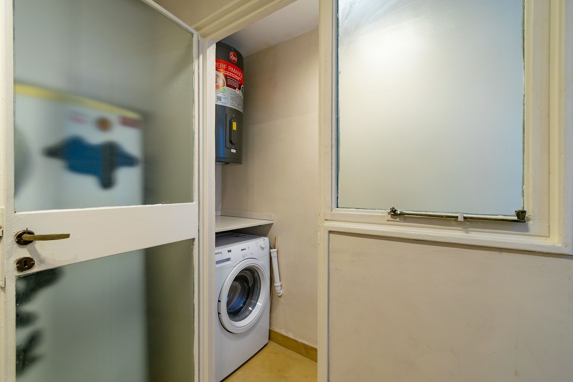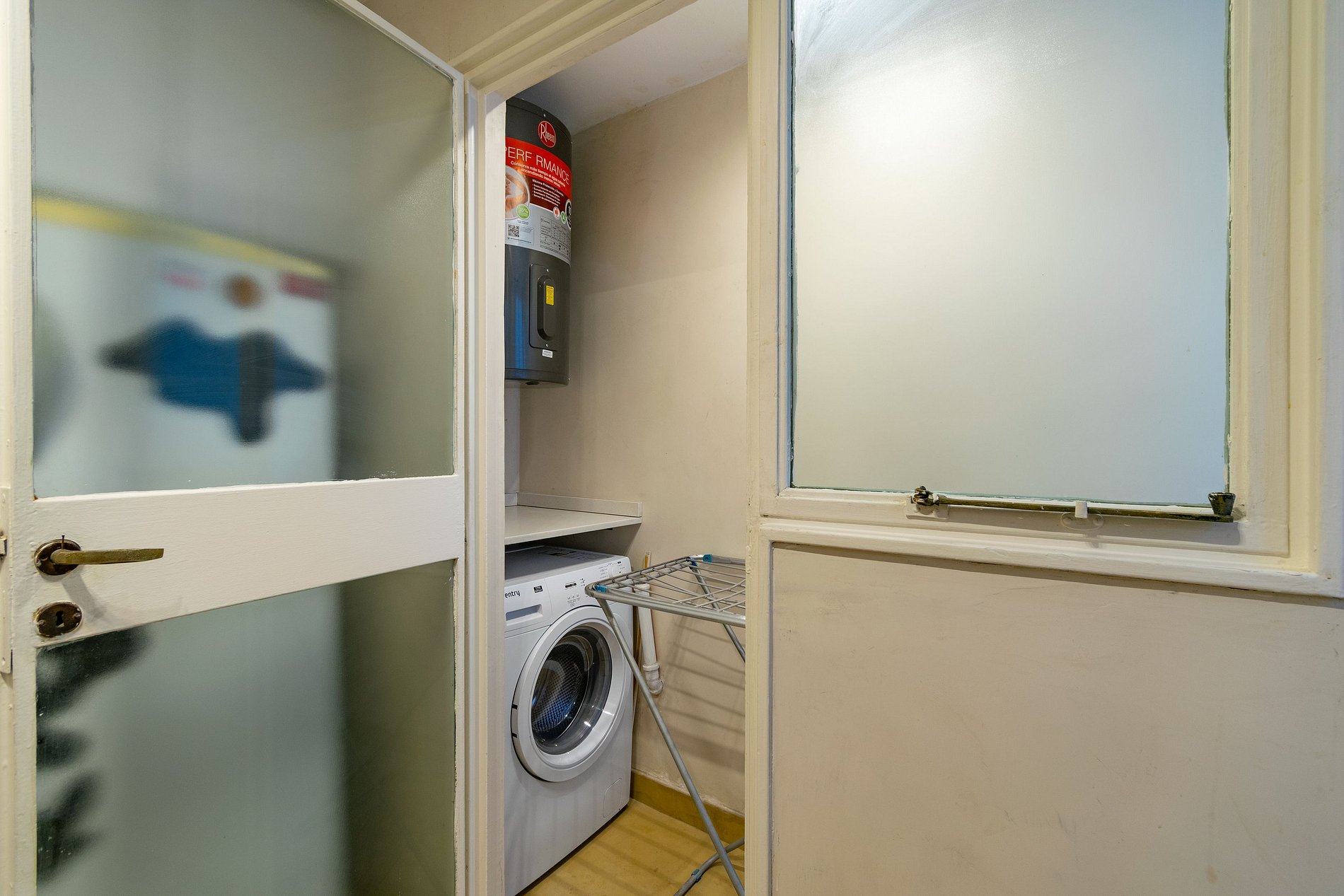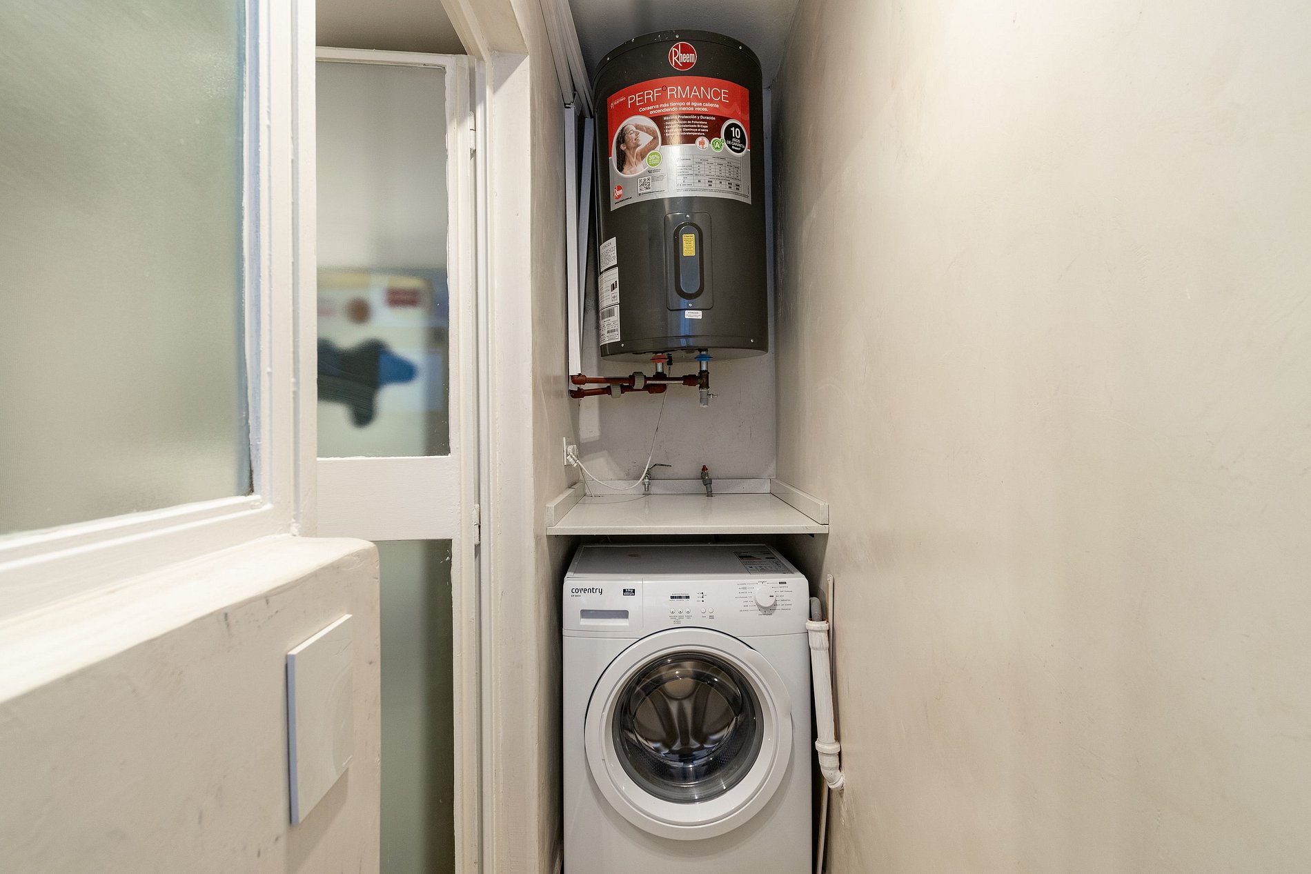 El alojamiento se encuentra en el cuarto piso y consta de dos habitaciones dobles, una sala de estar y comedor con balcón, un baño completo, cocina y lavadero