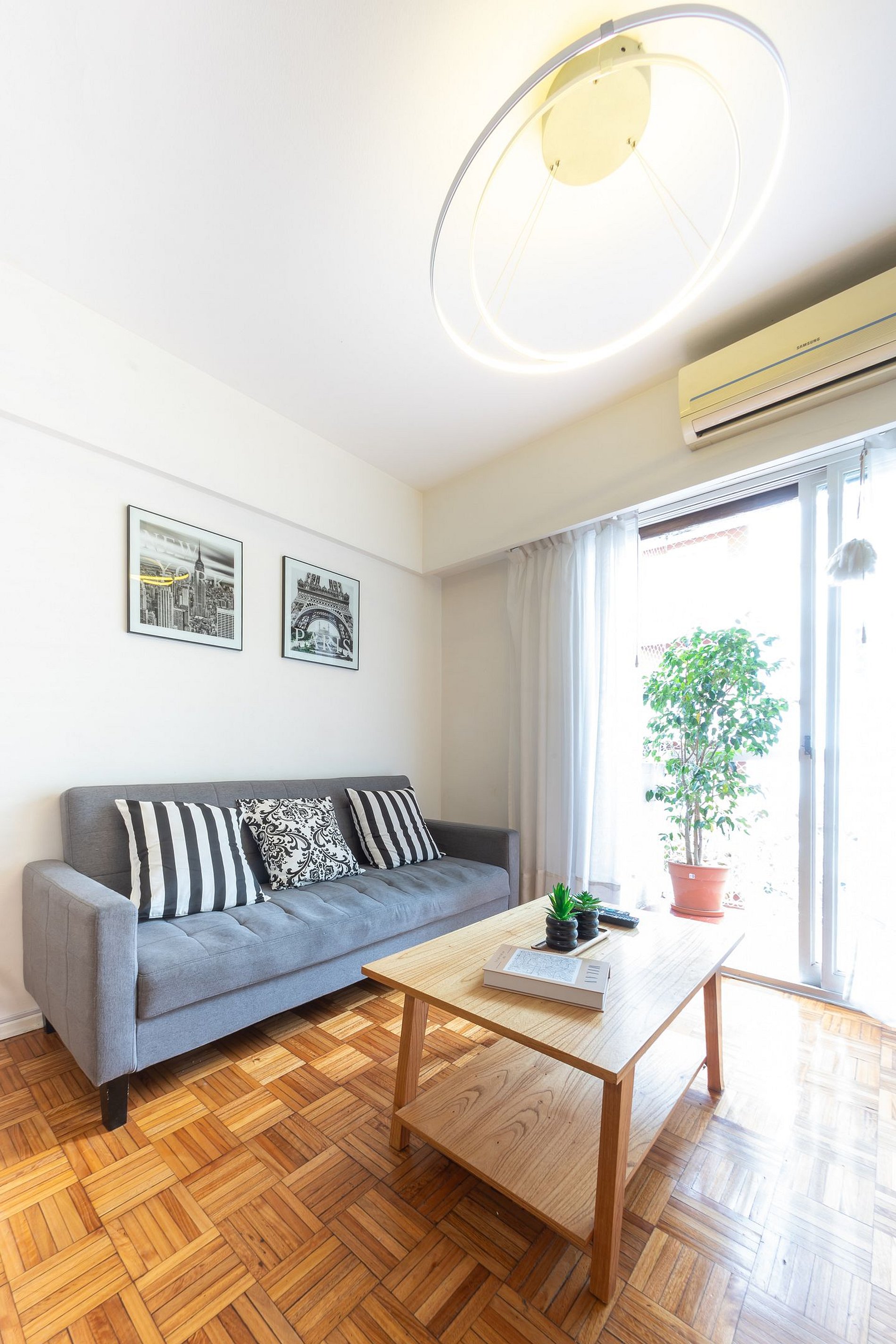 Los tres ambientes tienen ventanas que, durante el día, llenan el espacio de luz natural. Además, podrás disfrutar de un amplio balcón con vista a la copa de frondosos árboles.