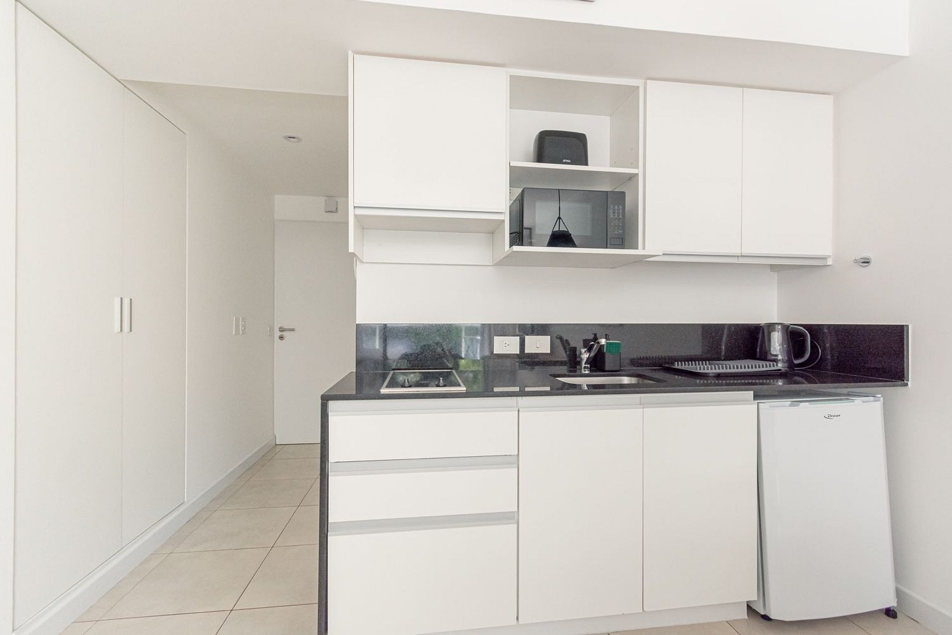 El espacio cuenta con una cama matrimonial con colchon confortable y blanqueria de excelente calidad! Tiene una tv con acceso a netfilx, amazon prime, youtube y mas plataformas, aire acondicionado frio/calor y excelente conexion de wifi. La cocina esta equipada con heladera, microondas, hornalla electrica, tostadora, pava electrica y cafetera. El baño tiene bañera con ducha, inodoro y bidet. Ademas el edificio tiene lavarropas y secarropas para uso compartido!