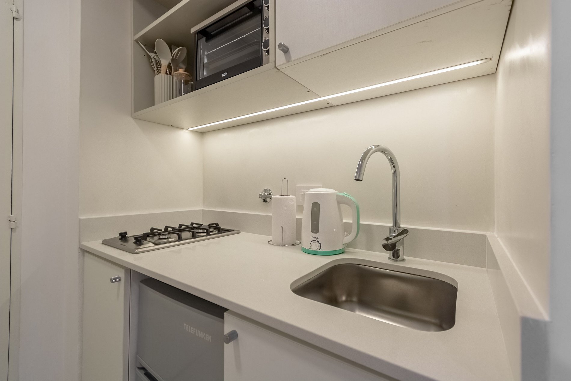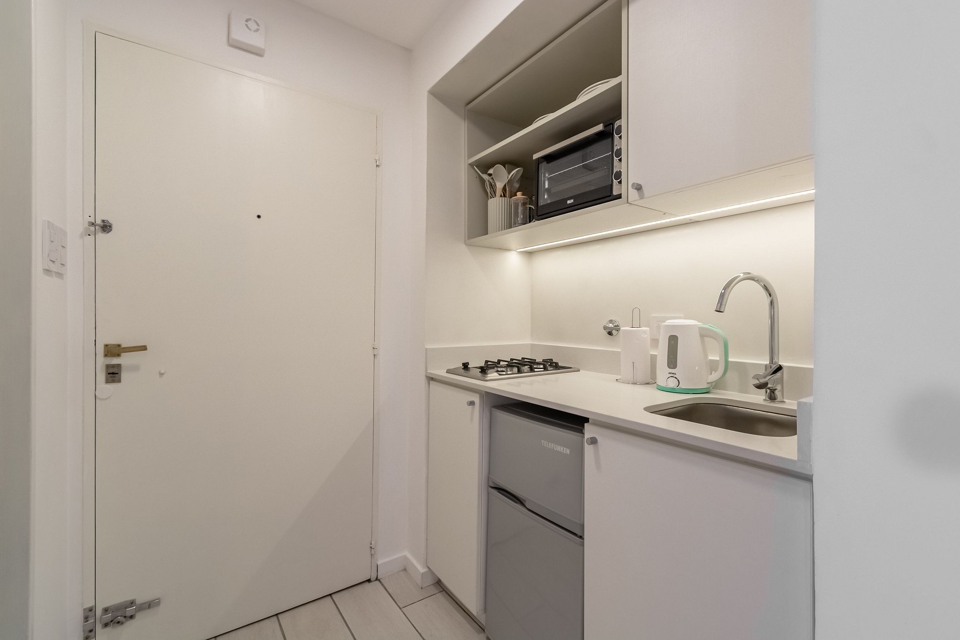 Estudio hecho a nuevo, con muebles en impecale estado. Cómodo para hasta dos personas. Con un sommier queen size muy confortable, ideal para un buen descanso. Cocina totalmente equipada. Un lugar ideal para un buen descanso.