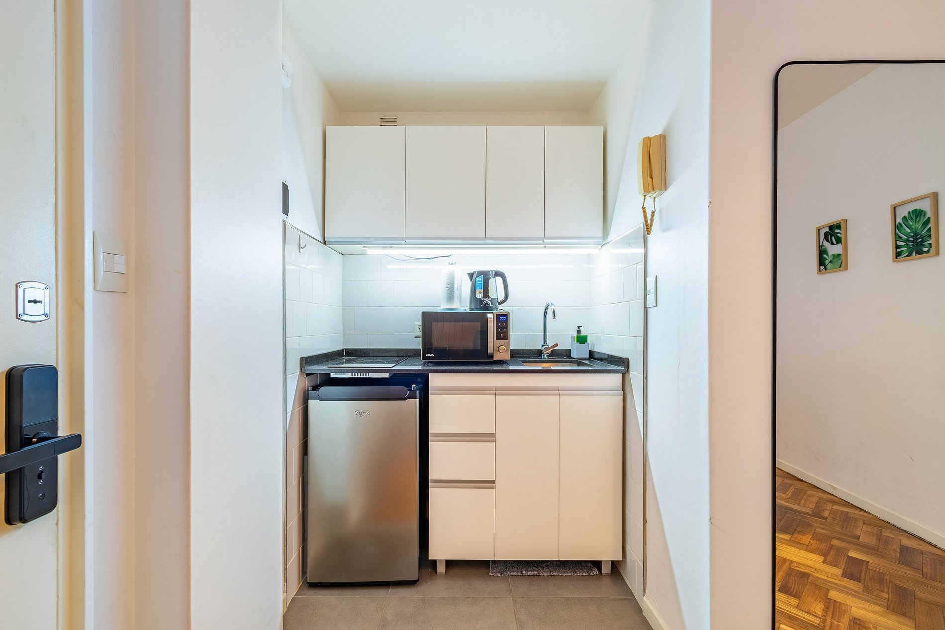 El departamento, ideal para dos personas, cuenta con Wi-Fi de alta velocidad, Smart TV giratoria, aire acondicionado, cerradura electrónica con código y una cocina totalmente equipada. Su diseño moderno y funcional garantiza una estadía cómoda, ya sea por turismo, trabajo o trámites en la ciudad.
