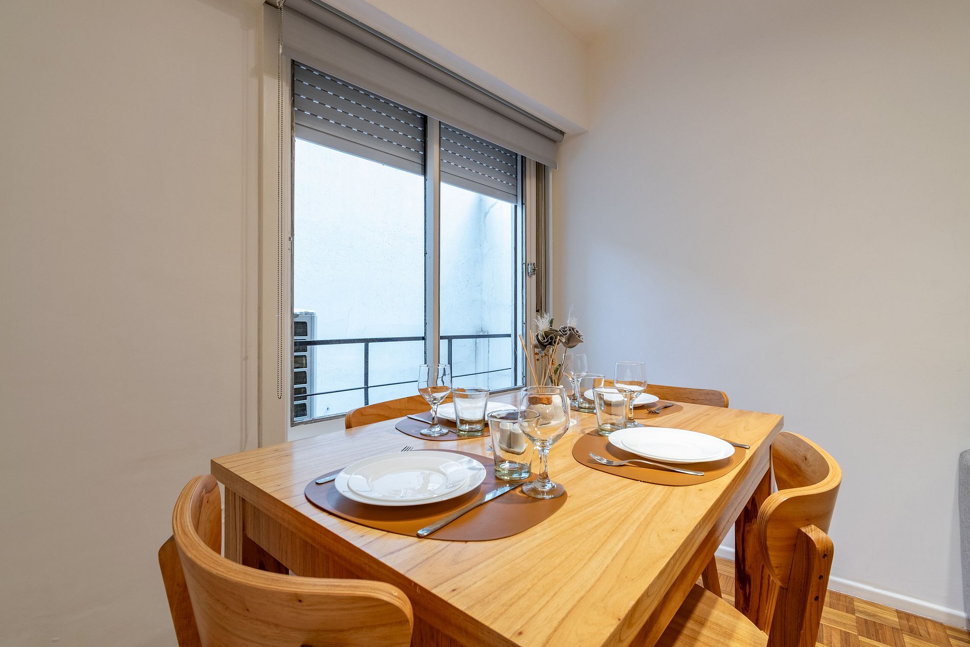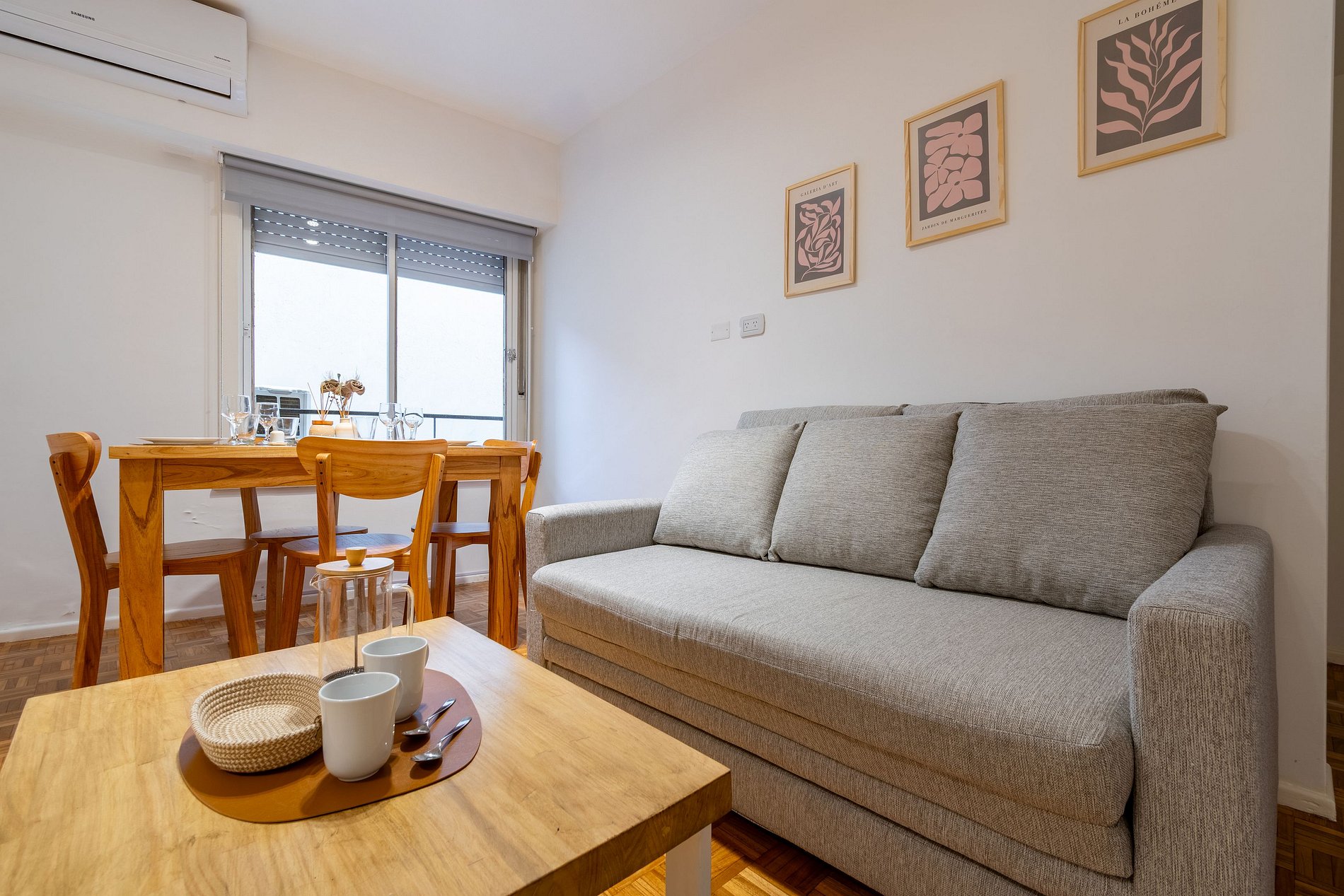 Es cálido y silencioso y está en pleno Recoleta,. Da al pulmón asique es ideal para descansar, sin ruidos. Totalmente remodelado, con cocina y baño a nuevo, cama doble y sofá cama para un tercer huésped. Muy bien equipado: TV Smart grande, buen Wi-Fi y lavadero. Ubicado en una zona segura, cerca de subte, supermercados, cafés y centros médicos.