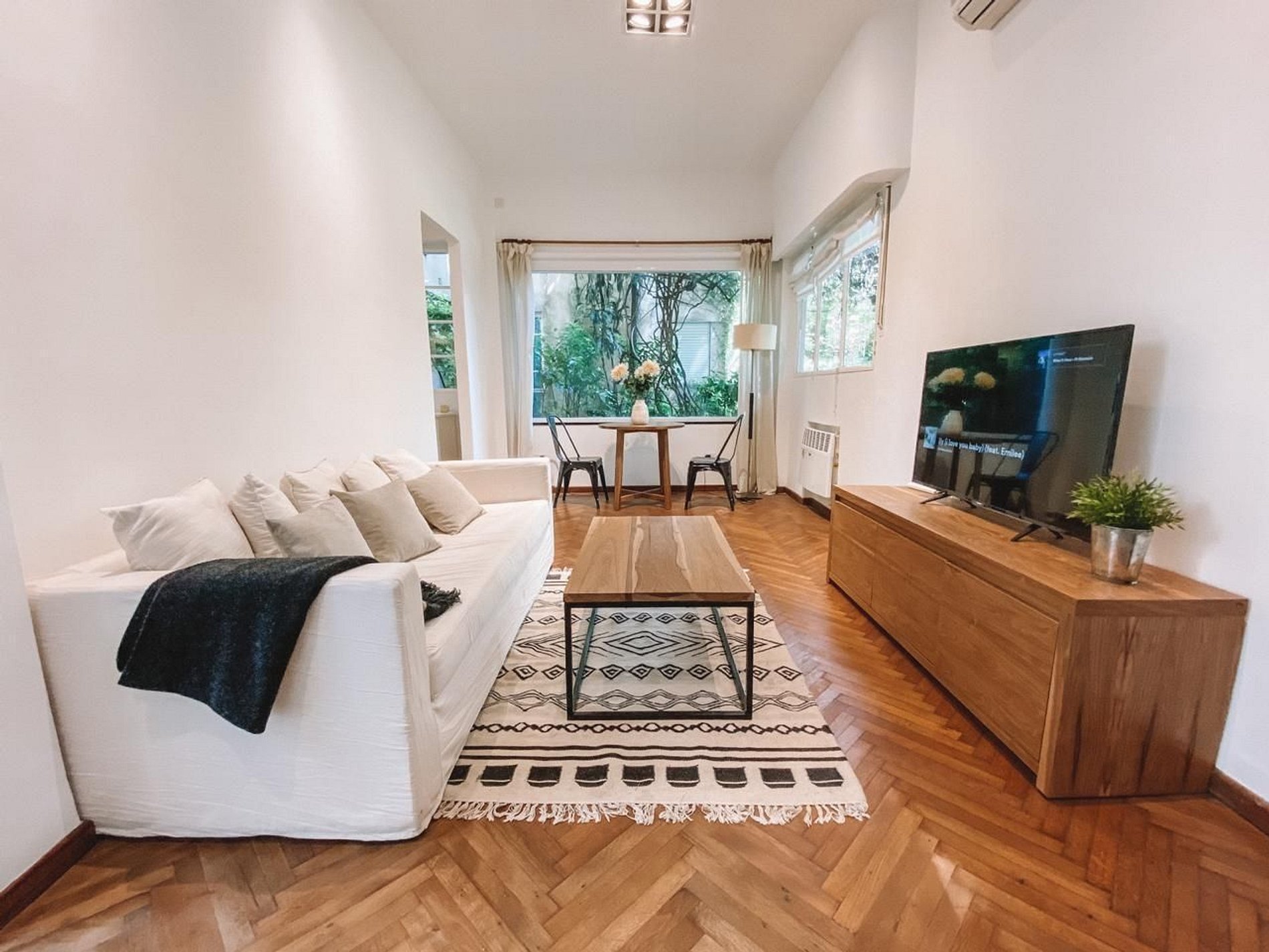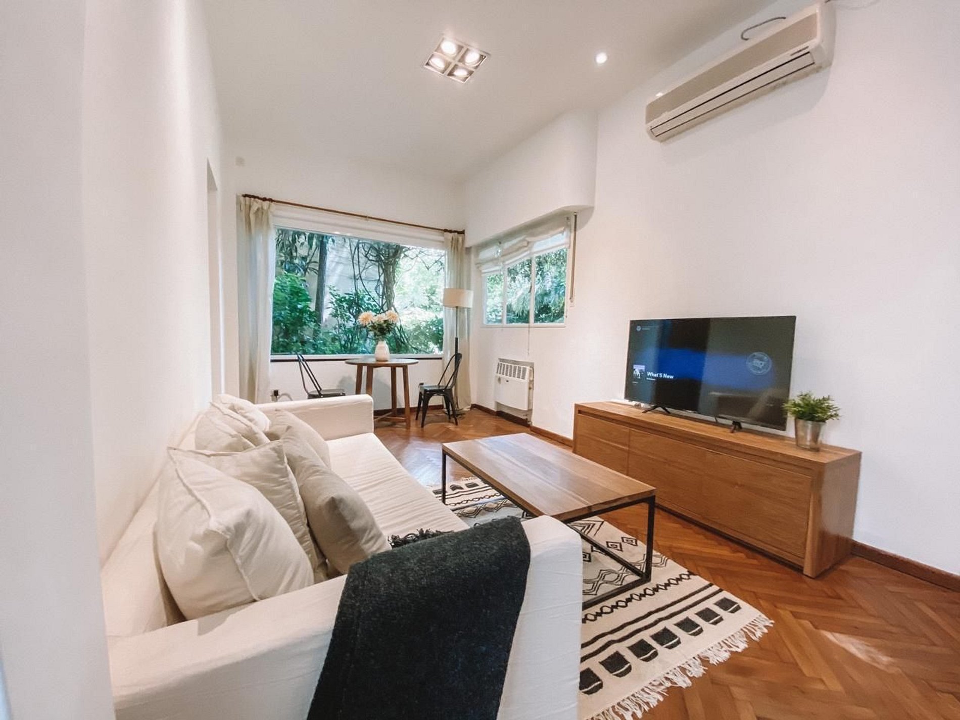 El departamento cuenta con Wi-Fi, TV, un hermoso jardín, aire acondicionado en el dormitorio y sala de estar y lavarropas. Su ubicación te brinda acceso a lo mejor de la ciudad y la comodidad de una zona residencial.