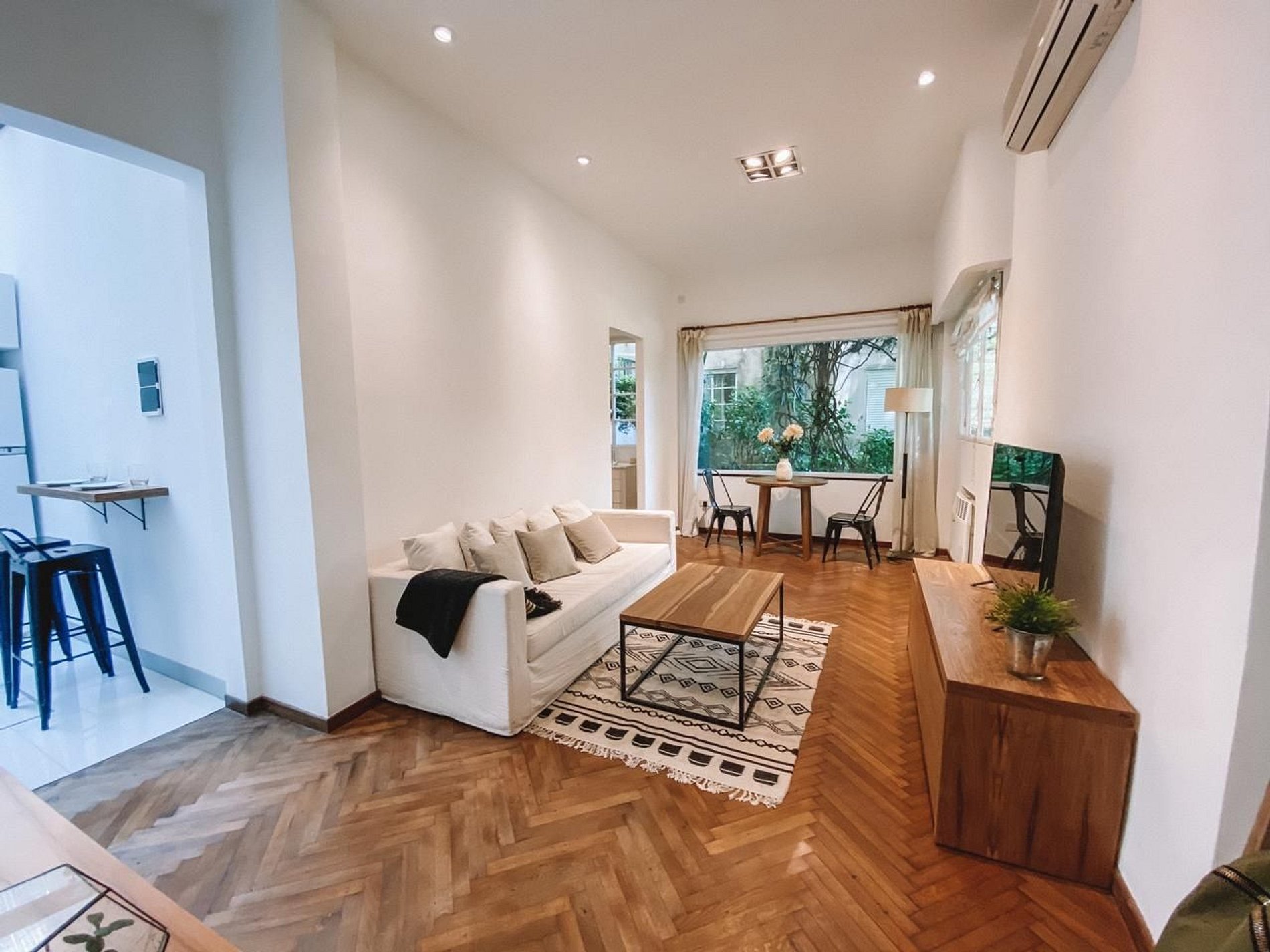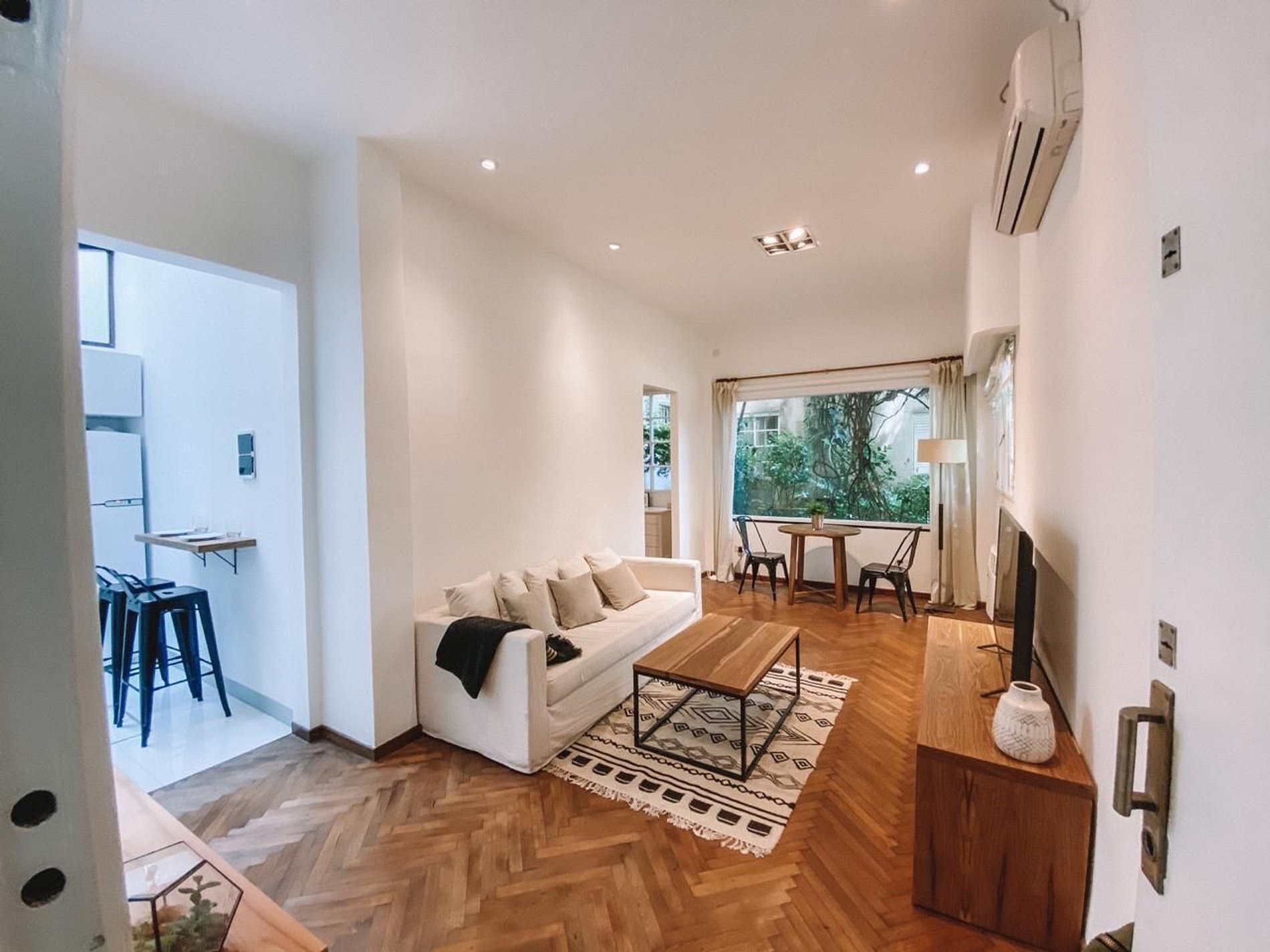 Es un departamento muy tranquilo y particular, vas a tener una muy linda vista al jardín desde la mesa del comedor y desde el dormitorio.
